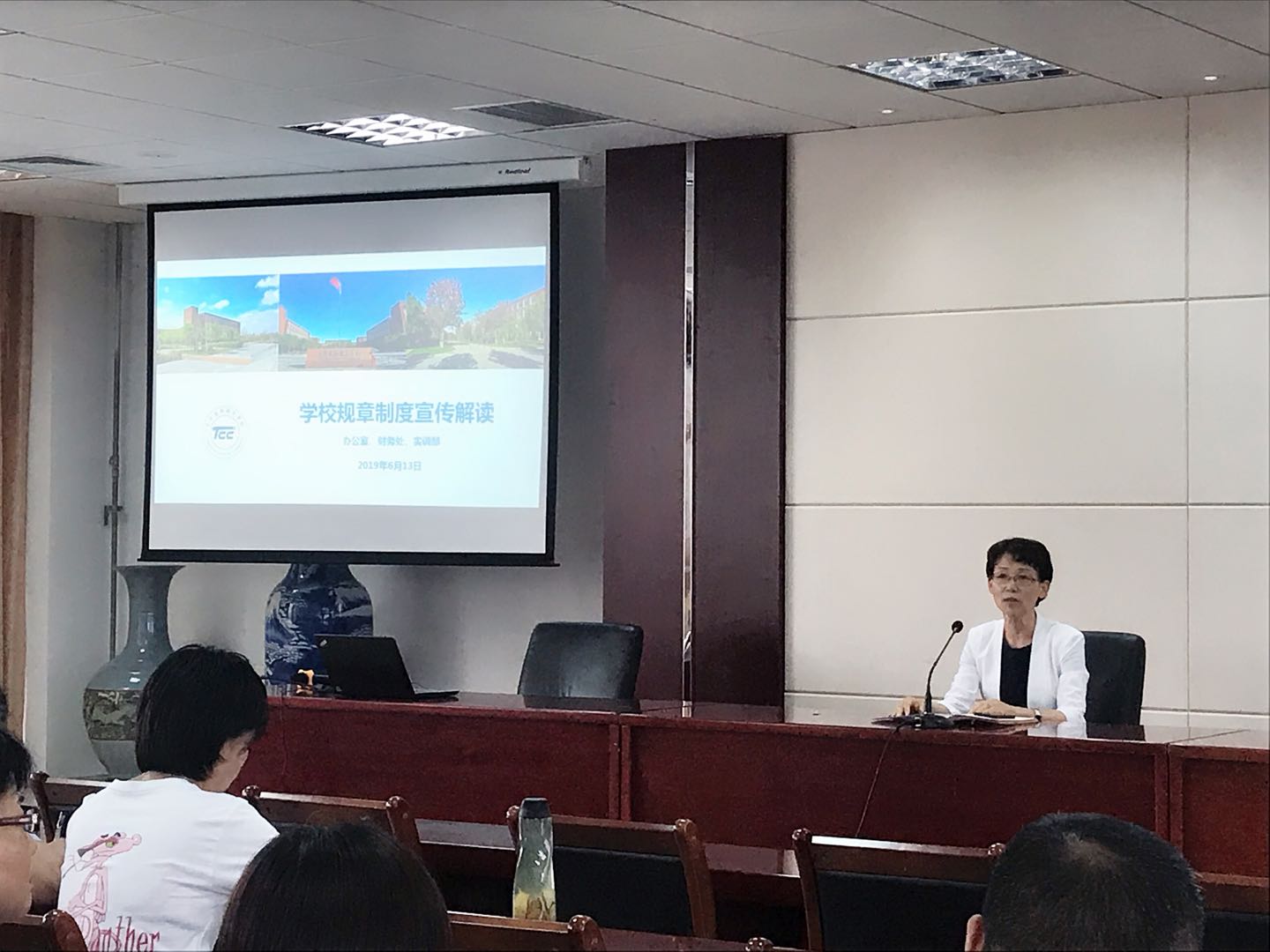 會上,辦公室、財務處和實訓部4名相關主講人分別針對《公務用車及公務交通費用管理辦法(試行)》、《關于教職工外出參加會議管理暫行辦法》、《財務開支審批權限管理辦法(2019年修訂)》、《采購管理實施細則》等8項制度重點內容和需要工作中特別注意的環節進行了解讀。