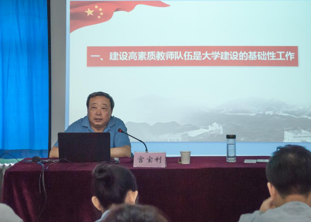 校長宮寶利同志以“建設(shè)高素質(zhì)教師隊(duì)伍”為題,從建設(shè)高素質(zhì)教師隊(duì)伍是大學(xué)建設(shè)的基礎(chǔ)性工作、高素質(zhì)教師隊(duì)伍的標(biāo)準(zhǔn)和好教師的要求、立德樹人和師德師風(fēng)建設(shè)三個(gè)方面作了專題講座。宮校長勉勵(lì)新入職教師牢記“立德樹人”使命,做好職業(yè)規(guī)劃與人生規(guī)劃,加強(qiáng)自身師德師風(fēng)建設(shè),以持之以恒的努力與學(xué)校共同成長。