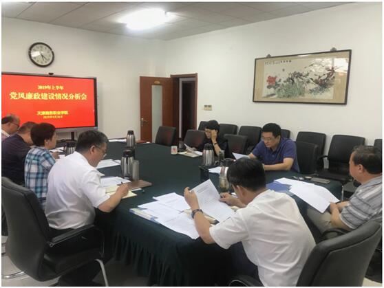 9月26日下午,學校召開2019年上半年黨風廉政建設情況分析會,學校黨委委員、領導班子成員、紀委委員參加會議。針對《天津商務職業學院2019年上半年黨風廉政建設情況分析報告》,與會人員進行了深入討論,分析了學校黨風廉政建設面臨的形勢和任務,提出了整改意見建議。會議還通報了暑期駐市商務局紀檢監察組開展落實中央八項規定精神專項檢查反饋線索的核實和整改情況,部署近期校領導運用監督執紀“第一種形態”工作安排。