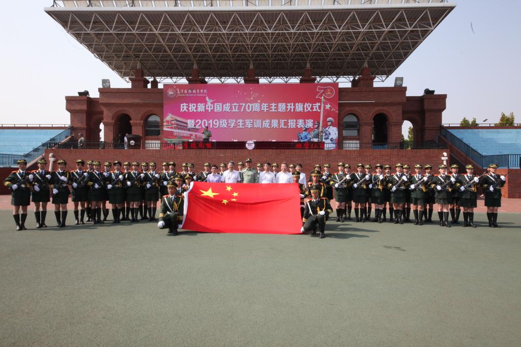 9月30日,2019級新生軍訓成果匯報表演在學校體育場舉行。市警備區辛維剛大校,校領導吳惟義、宮寶利、徐琤穎、尹秀琴、周寶玲出席大會,學校相關部門及二級專業教學學院負責人、教師代表、全體2019級新生參加儀式。儀式由黨委副書記徐琤穎主持。