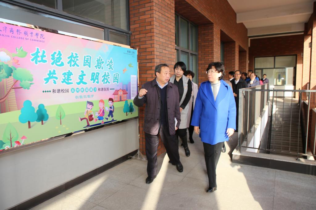 11月14日上午,市人大常委會副主任李虹一行來到我校視察《天津市預防和治理校園欺凌若干規定》實施情況,市人大常委會委員馬建標、市人大代表田勤等一行12人陪同,學校黨委書記吳惟義,黨委副書記、校長宮寶利,黨委副書記徐琤穎接待并作現場講解。