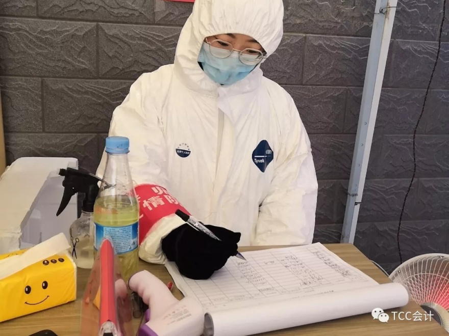 會計1703班何婧婧同學2019年被會計學院黨總支列為學生黨員發展對象,她品學兼優、樂于助人,是天津商務職業學院優秀志愿者。疫情無情人有情,新型冠狀病毒感染的肺炎疫情在武漢爆發以來,全國上下眾志成城加強防控、抗擊疫情。在這個關鍵時刻,何婧婧同學恰逢回甘肅省白銀市會寧縣家鄉過年,她積極參加志愿服務,通過共青團甘肅省委青年抗疫志愿者招募通道,經過嚴格的考核和培訓,成為一名光榮的志愿者。何婧婧同學每天身著統一配備的防護衣和口罩,在社區積極開展防控工作,搭建消毒通道,隔離武漢返城人員,認認真真落實好每一次消毒、測體溫、登記、解答和勸導,為疫情防控工作奉獻自己的青春熱血,為保障居民群眾生命安全和身體健康積極工作。