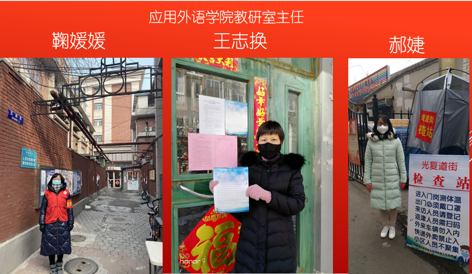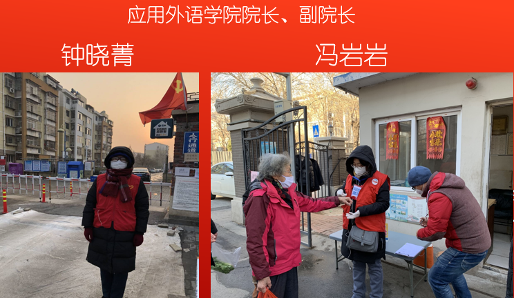 應用外語學院還有很多黨員教師積極主動參加社區的志愿服務,為抗擊疫情做出自己的一份努力。