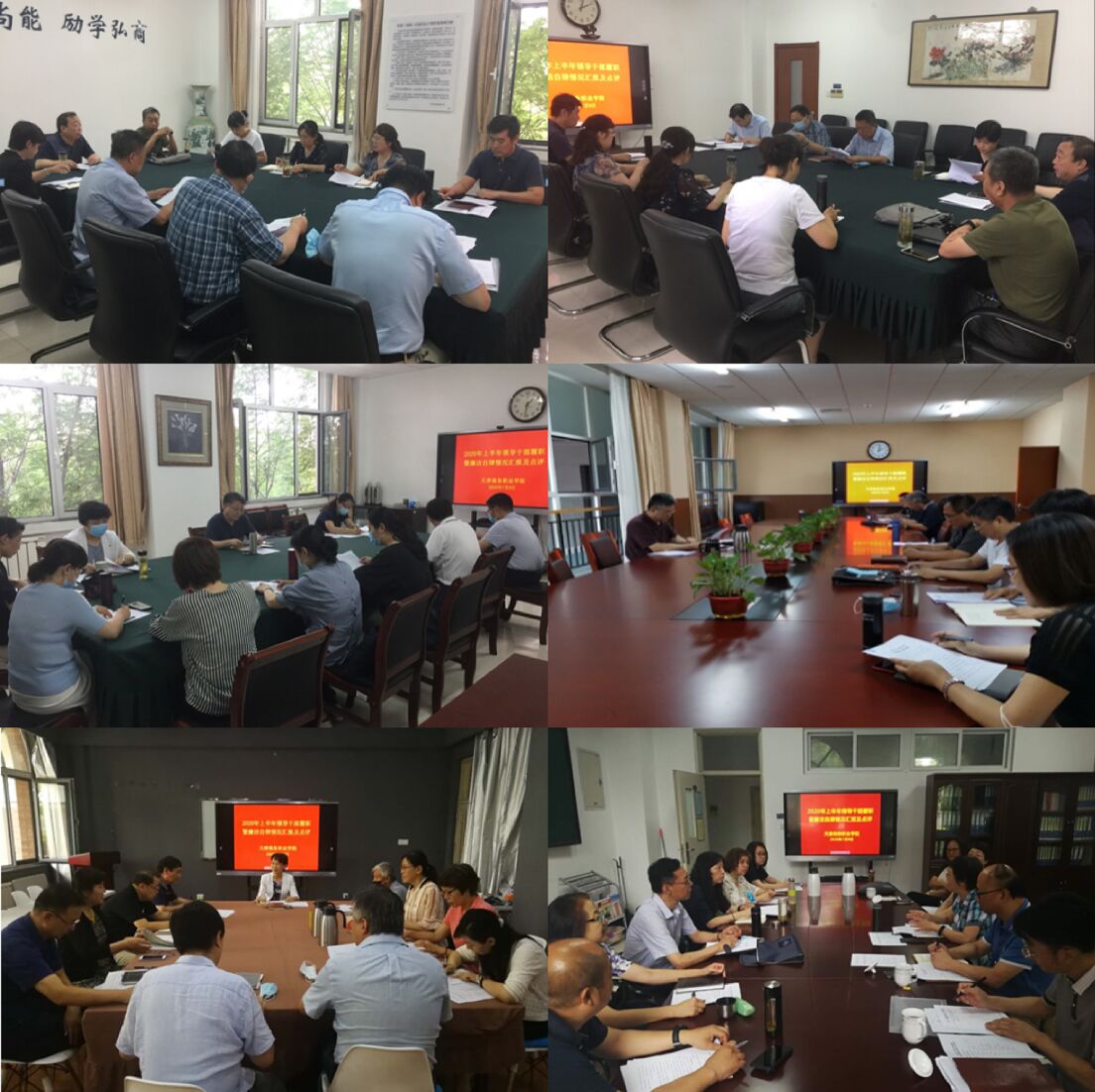 全體中層干部分為五組,分別對2020年上半年個人履職和廉潔自律情況進行了匯報,圍繞如何以習近平新時代中國特色社會主義思想為指導,全面貫徹黨的十九大和十九屆二中、三中、四中全會精神和2020年全國兩會精神,不忘初心、牢記使命,增強“四個意識”、堅定“四個自信”、做到“兩個維護”,著重總結工作實績,查找主要不足。校領導分組參會,對組內中層干部2020年上半年履職暨廉潔自律情況報告進行了審閱,并做總結點評。在匯報和點評后,各位校領導分別安排了廉政、履職談話。