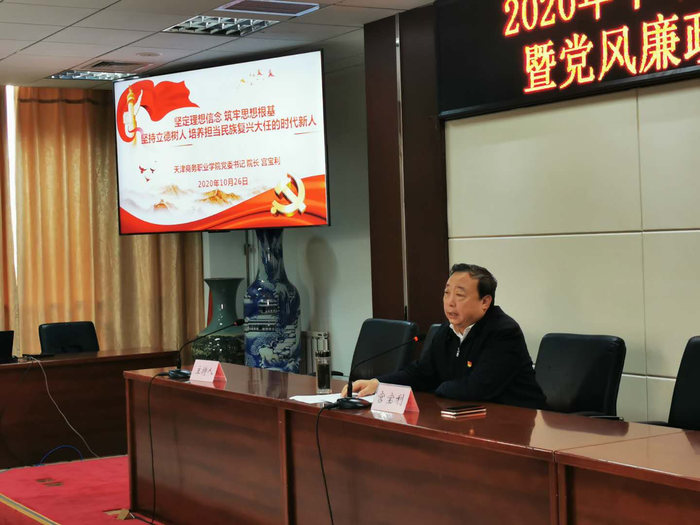 最后,學校黨委書記、校長宮寶利以《堅定理想信念 筑牢思想根基 堅持立德樹人 培養擔當民族復興大任的時代新人》為題講授了一次廉潔從政黨課。宮書記結合通報案例和學校工作實際,從全面理解準確把握當前反腐倡廉工作形勢、遵規守紀嚴格落實廉潔從政要求和學思踐悟立身篤行新時代教育使命等方面進行講解。他要求廣大黨員干部要不斷強化理論武裝、錘煉政治品格;加強制度約束、從嚴管理監督;提升履職本領、堅守責任擔當;嚴格廉潔自律;踐行教育使命;切實將廉潔自律作為一種思想境界來提升,一種職業操守來要求,時刻警鐘長鳴,矢志奮斗,為學院高質量發展作出新的更大的貢獻。