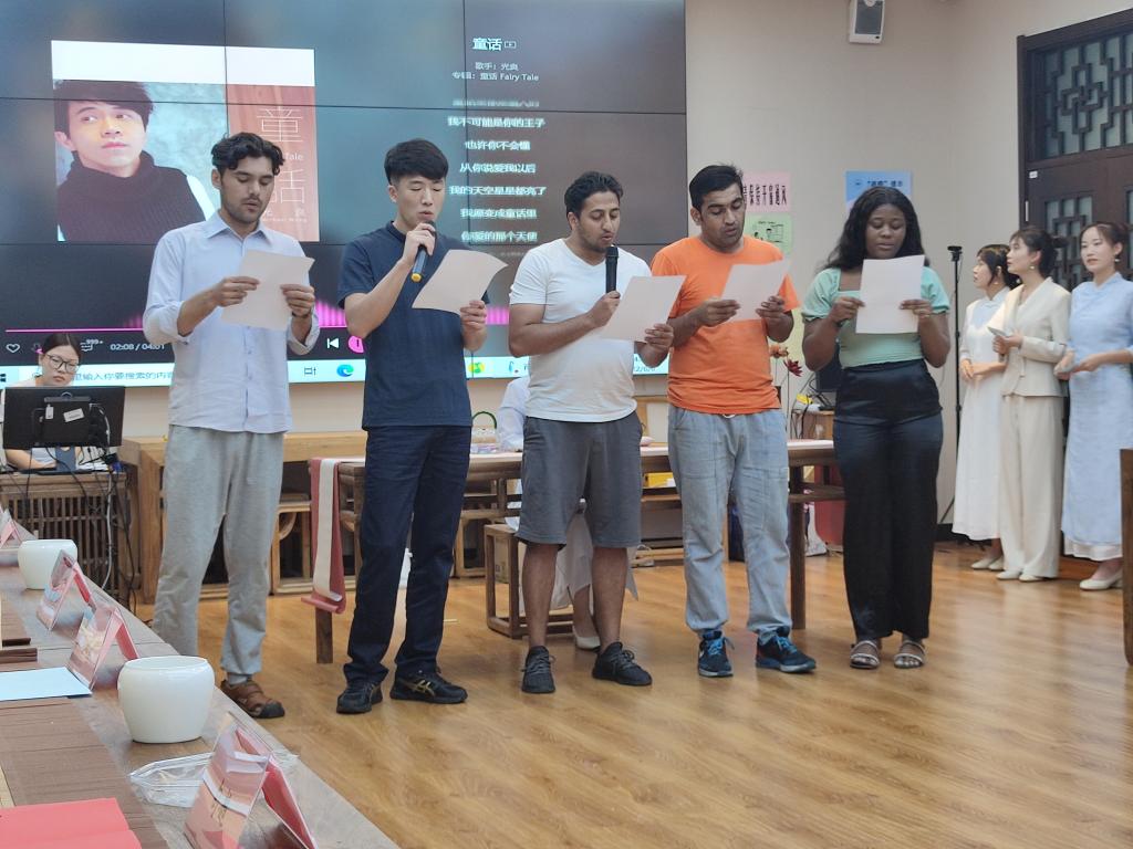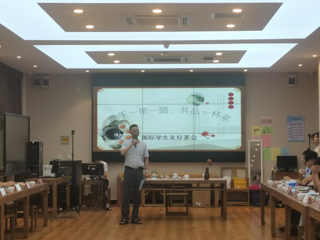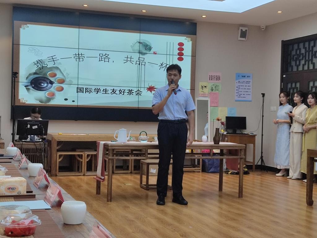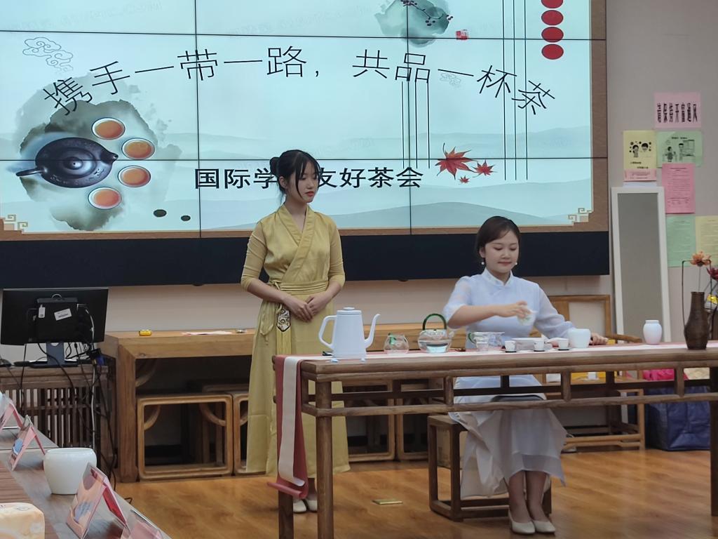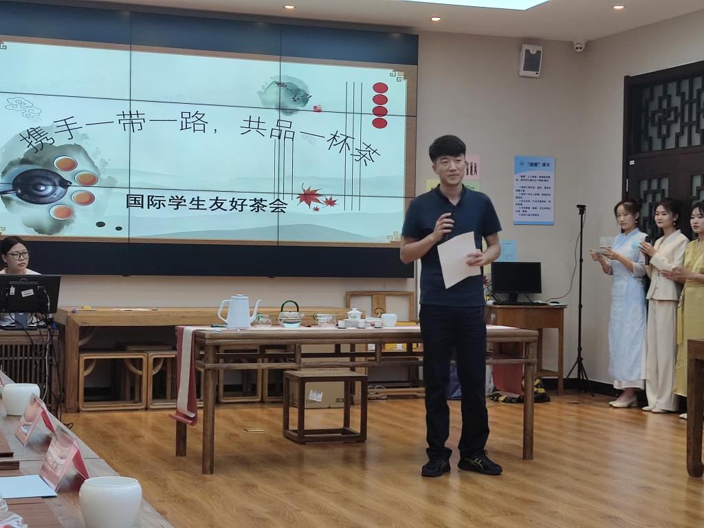 茶會(huì)上,旅游學(xué)院負(fù)責(zé)人對(duì)天津大學(xué)師生的到訪表示熱烈歡迎,并表示天津大學(xué)留學(xué)生與我校學(xué)生聯(lián)合組隊(duì)參加此次大賽,表明兩校友誼日益深厚;此次茶會(huì)旨在與“一帶一路”國家學(xué)生互享、互鑒、互賞中華茶藝茶道,用文化交流搭建中外一家親的平臺(tái)。天津大學(xué)帶隊(duì)老師對(duì)我校的熱情邀請(qǐng)和接待表示由衷感謝,并表示此次茶會(huì)充分展示了中華茶藝的源遠(yuǎn)流長,充滿了傳統(tǒng)文化的質(zhì)樸與美感,有利于中外文化互融互通。天津大學(xué)留學(xué)生姜金成代表全體參賽留學(xué)生表示,要以此次大賽為契機(jī),全身心感受中國文化之美,建立與中國朋友的友誼橋梁。本次茶會(huì)中外學(xué)生一道表演了茶藝展演、舞蹈、歌曲等豐富多彩的節(jié)目。
