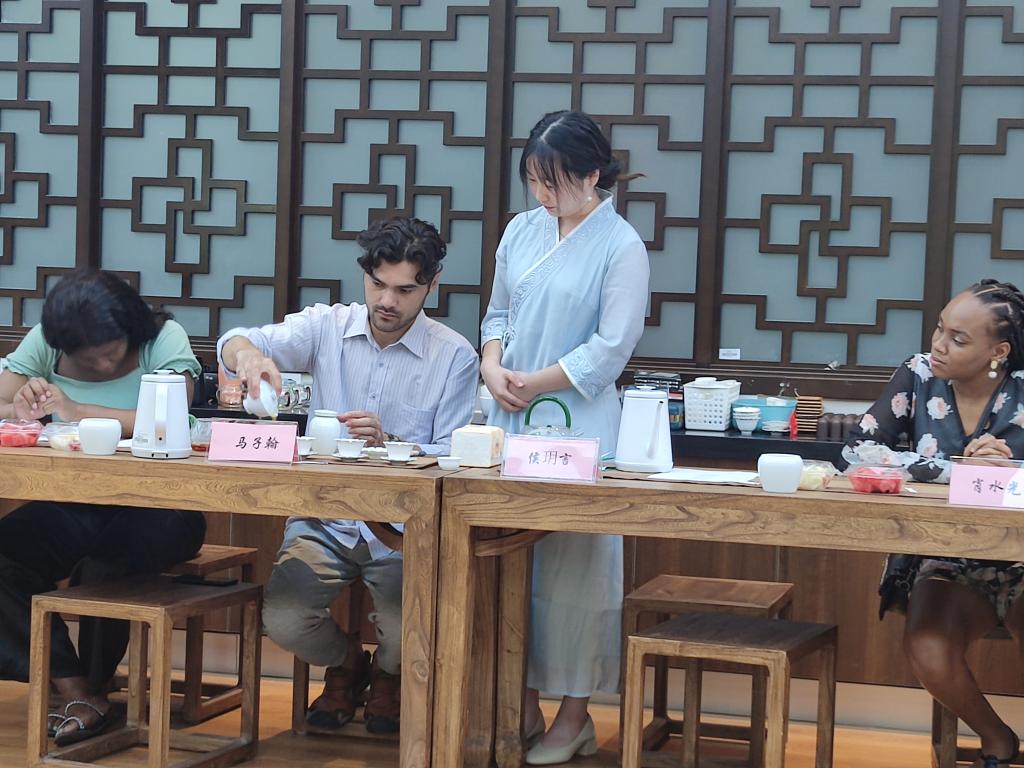 在2022年首屆世界職業(yè)院校技能大賽即將拉開帷幕之際,為增進(jìn)中外學(xué)生友誼,弘揚(yáng)茶藝文化,傳承茶藝經(jīng)典,為即將出征大賽的參賽選手加油鼓勁,8月6日,我校誠摯邀請(qǐng)?zhí)旖虼髮W(xué)參賽留學(xué)生及帶隊(duì)老師蒞臨我校,參加“攜手一帶一路,共品一杯好茶”國際學(xué)生友好茶會(huì),旅游學(xué)院、國際交流與合作處相關(guān)人員出席了茶會(huì)。