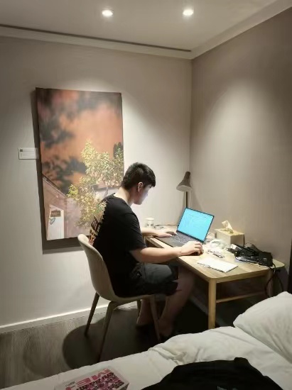 集訓中,他訓練積極能應對各項緊急任務,潛力巨大,在視覺設計和進口跨境兩個板塊幾乎零基礎的情況下,努力鉆研,咬定青山不放松,夜以繼日練習研究,努力挖掘自身的潛力,最終成為四個參賽項目的行家里手。