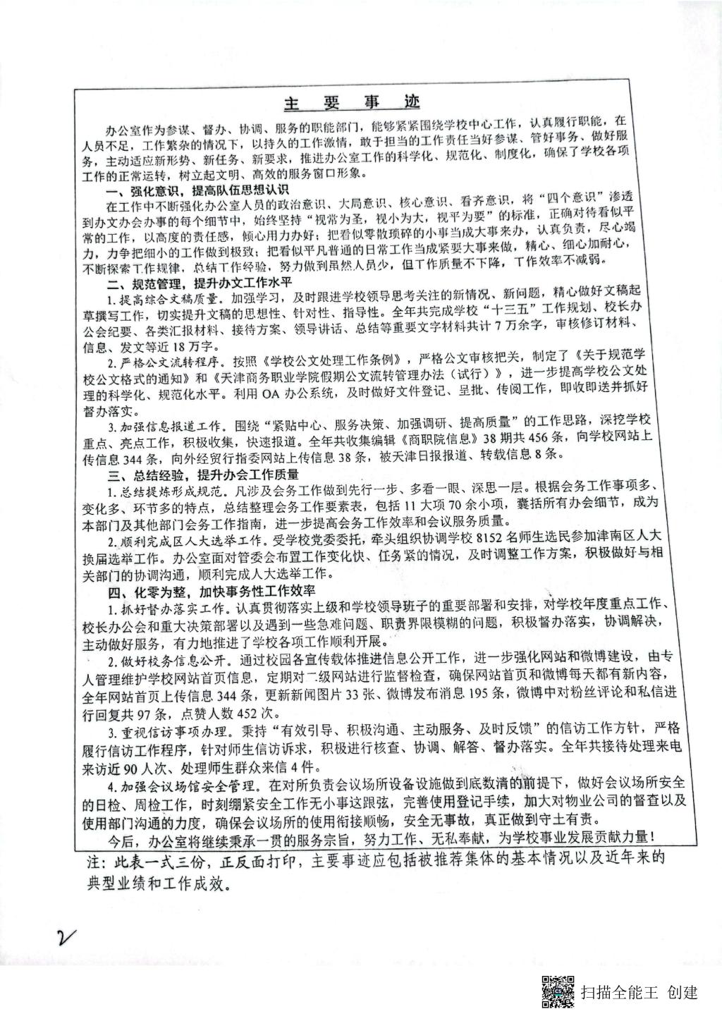 2016年度天津市工人先鋒號 學校辦公室