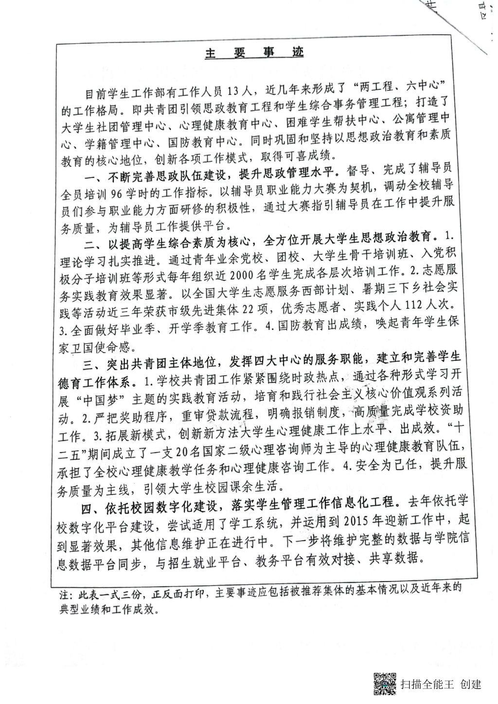 2015年度天津市工人先鋒號 學生工作部