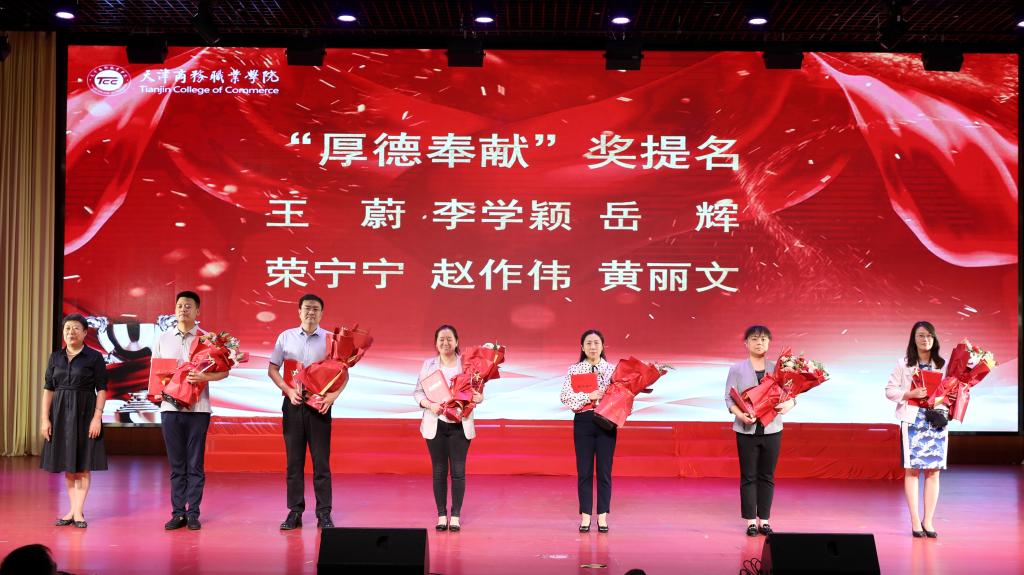 大會表彰了近一年中在教育教學、管理服務領域中獲得優異成績的35名個人和7個團隊;對首屆學校優秀專任教師、優秀專職輔導員、優秀管理服務人員進行了表彰;向校訓“四大獎項”獲得者和團隊進行了頒獎。樊穎、韓仁杰、田玉娟、楊玥、畢博賢五位教師代表各項獲獎教師發言。