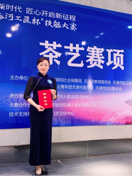 2022年天津市第三屆“海河工匠杯”技能大賽(茶藝賽項)于11月12-13日在天津津門茶文化中心順利舉辦并圓滿閉幕。旅游學院句超老師參加了本次比賽并在比賽中榮獲第5名的好成績,句超老師被授予高級茶藝技師職業(yè)資格。