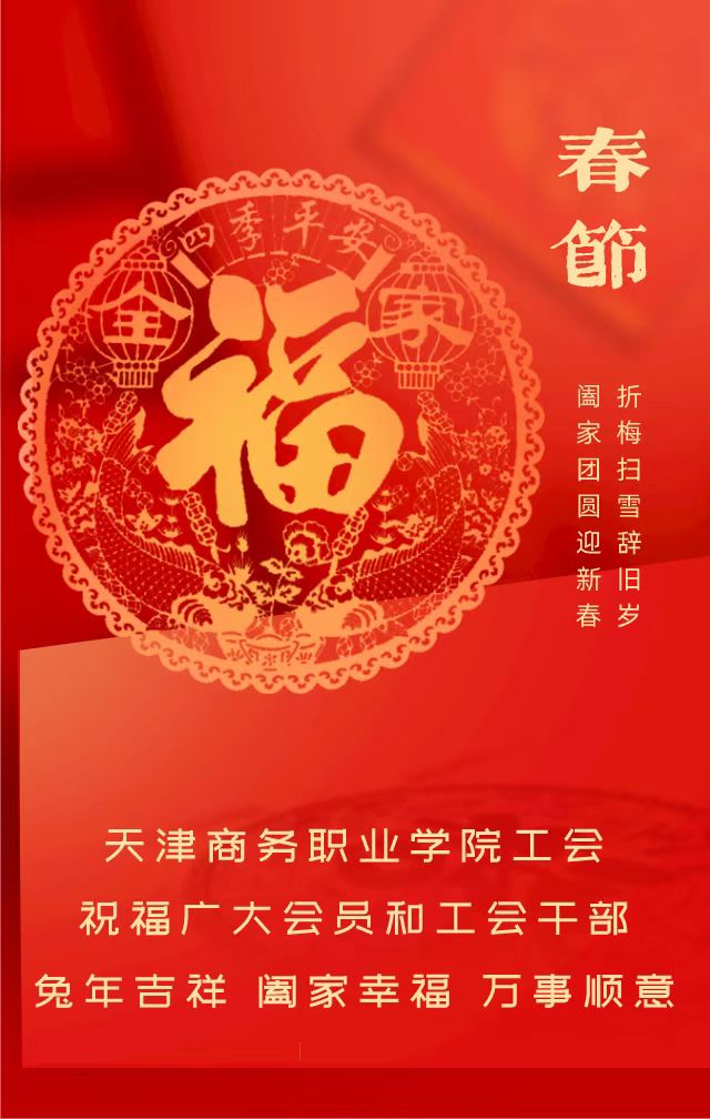 工會送祝福 | 天津商務職業學院工會祝福廣大會員和工會干部 兔年吉祥 闔家幸福 萬事順意