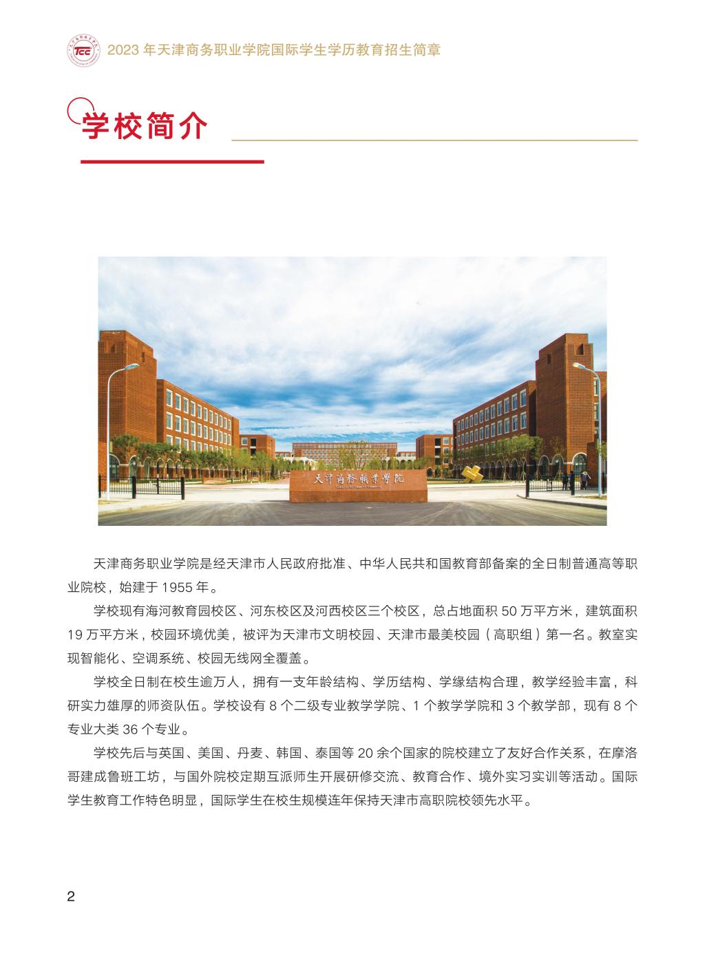 天津商務職業學院2023年國際學生學歷教育招生簡章(中英雙語版)