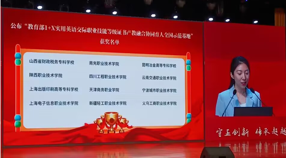 天津商務職業學院應用外語學院于2021年首次推行1+X試點制度,申報實用英語交際職業技能等級證書(簡稱VETS)考點,于2023年度獲評全國首批“教育部1+X證書VETS產教融合協同育人全國示范基地”。