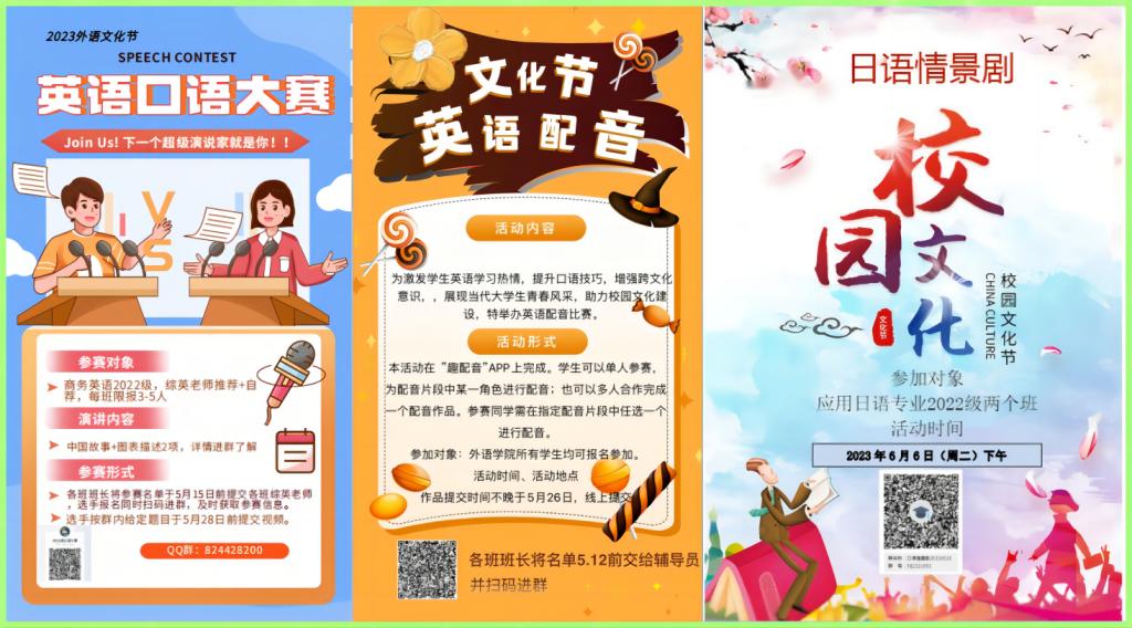 為進一步學習貫徹落實黨的二十大精神,落實全國教育大會、全國職業教育大會相關要求,結合深入開展學習貫徹習近平新時代中國特色社會主義思想主題教育,推進文明校園建設,促進學生德智體美勞全面發展,有效拓展學生專業學習,豐富學生課余生活,應用外語學院特推出外語文化藝術節系列活動。