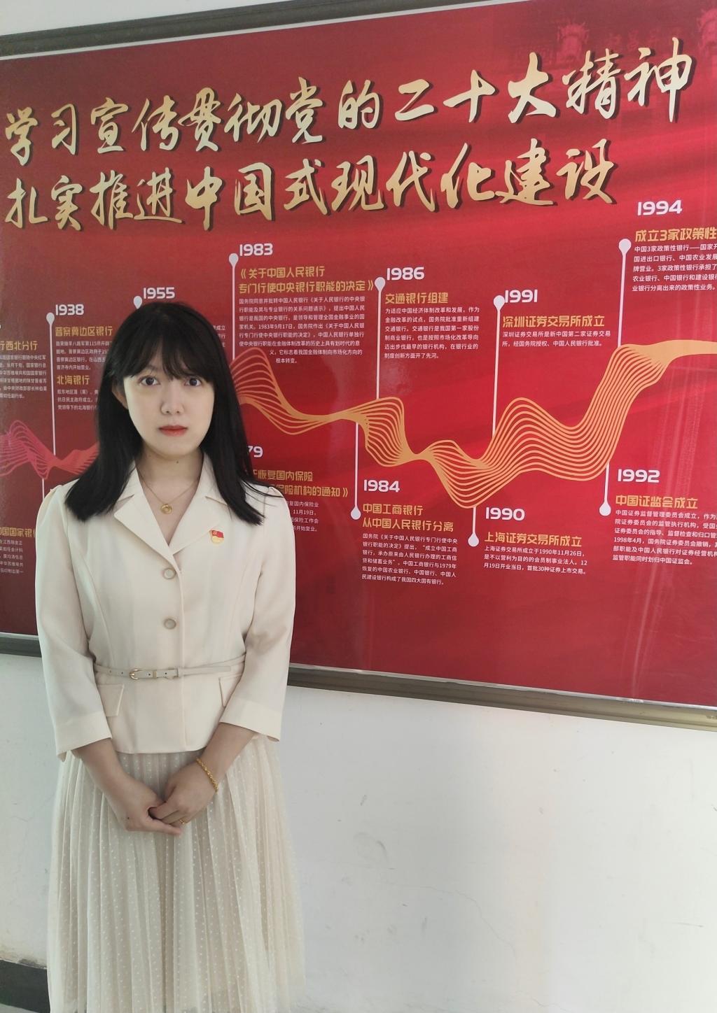 金融理財聯合黨支部組織委員,以習近平新時代中國特色社會主義理論凝心鑄魂,聚焦提升黨組織戰斗力凝聚力開展工作。天津市職業教育教師創新團隊成員。曾獲得天津市高職高專院校教師技能大賽二等獎、天津市教學能力比賽三等獎、金磚國家職業技能大賽國際總決賽三等獎、一帶一路暨金磚國家技能發展與技術創新大賽三等獎,近年來指導學生參加各級專業技能類競賽多次獲項。