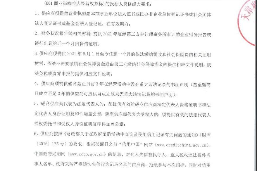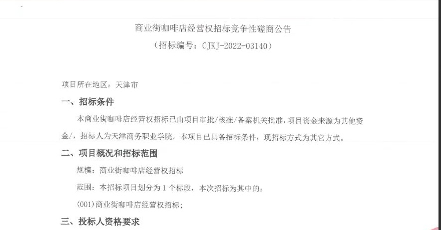 商業街咖啡店經營權招標競爭性磋商公告