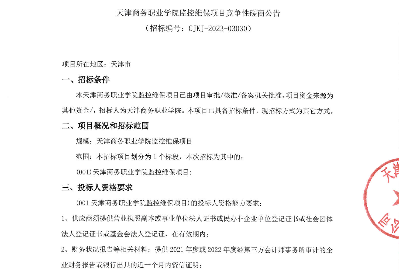 天津商務(wù)職業(yè)學(xué)院監(jiān)控維保項(xiàng)目競爭性磋商公告