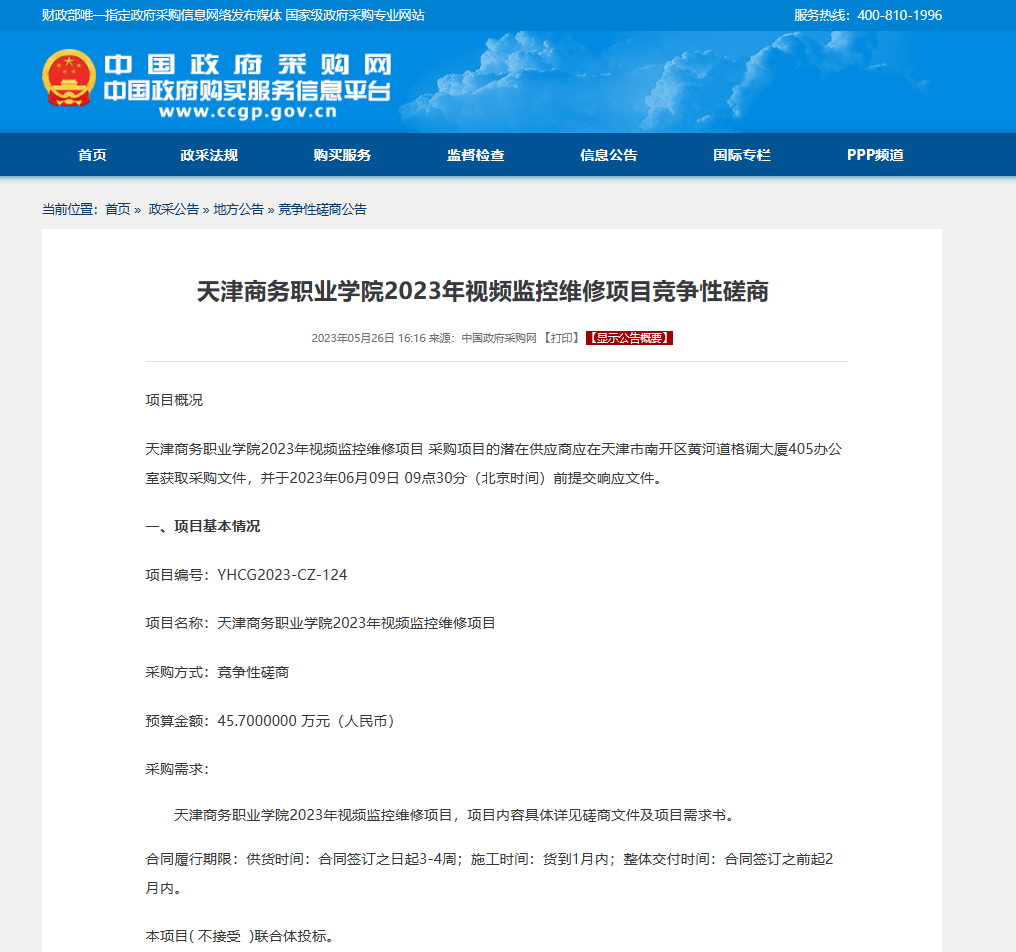 天津商務(wù)職業(yè)學(xué)院2023年視頻監(jiān)控維修項(xiàng)目競爭性磋商