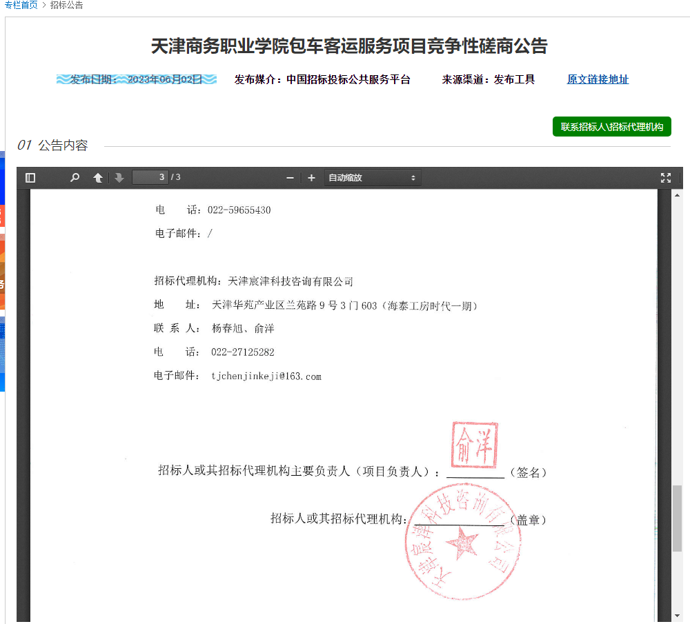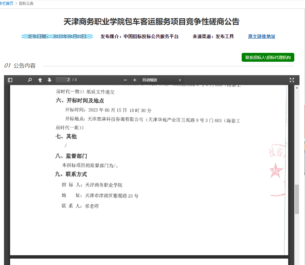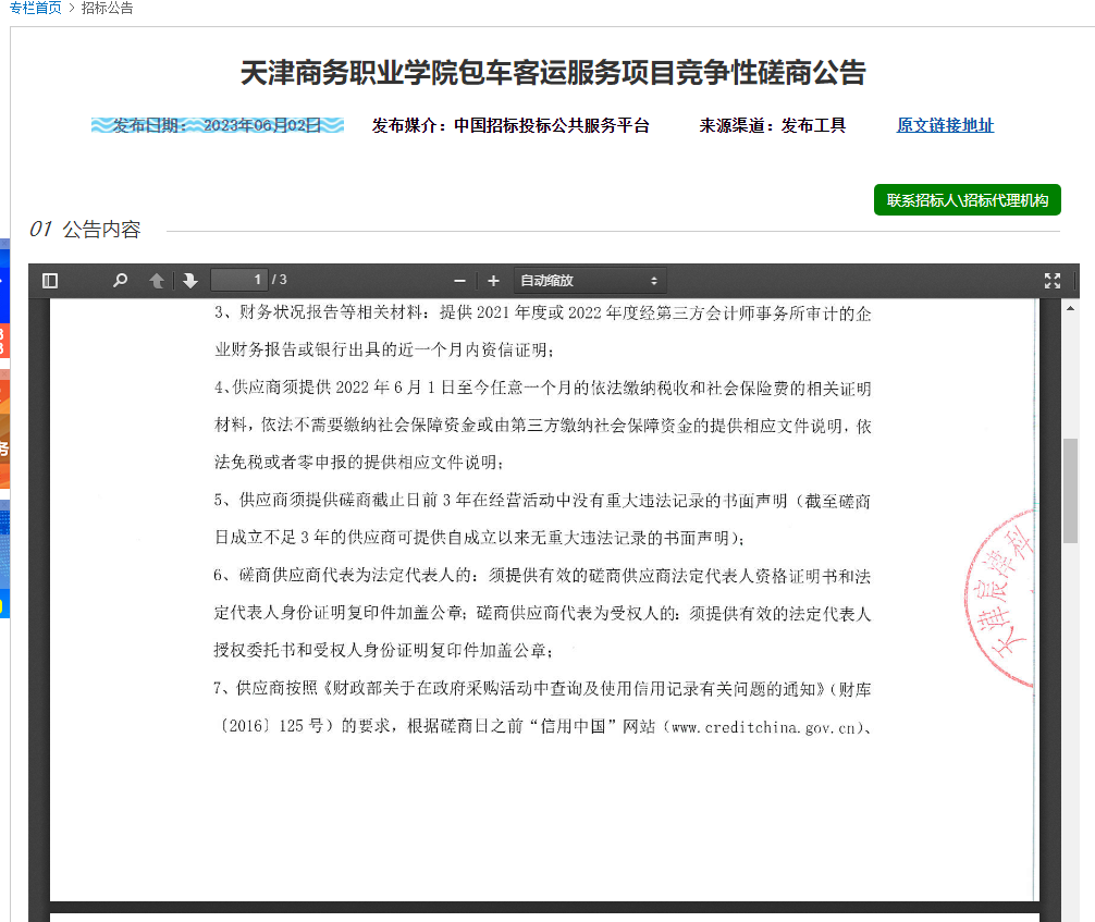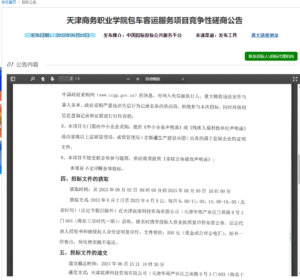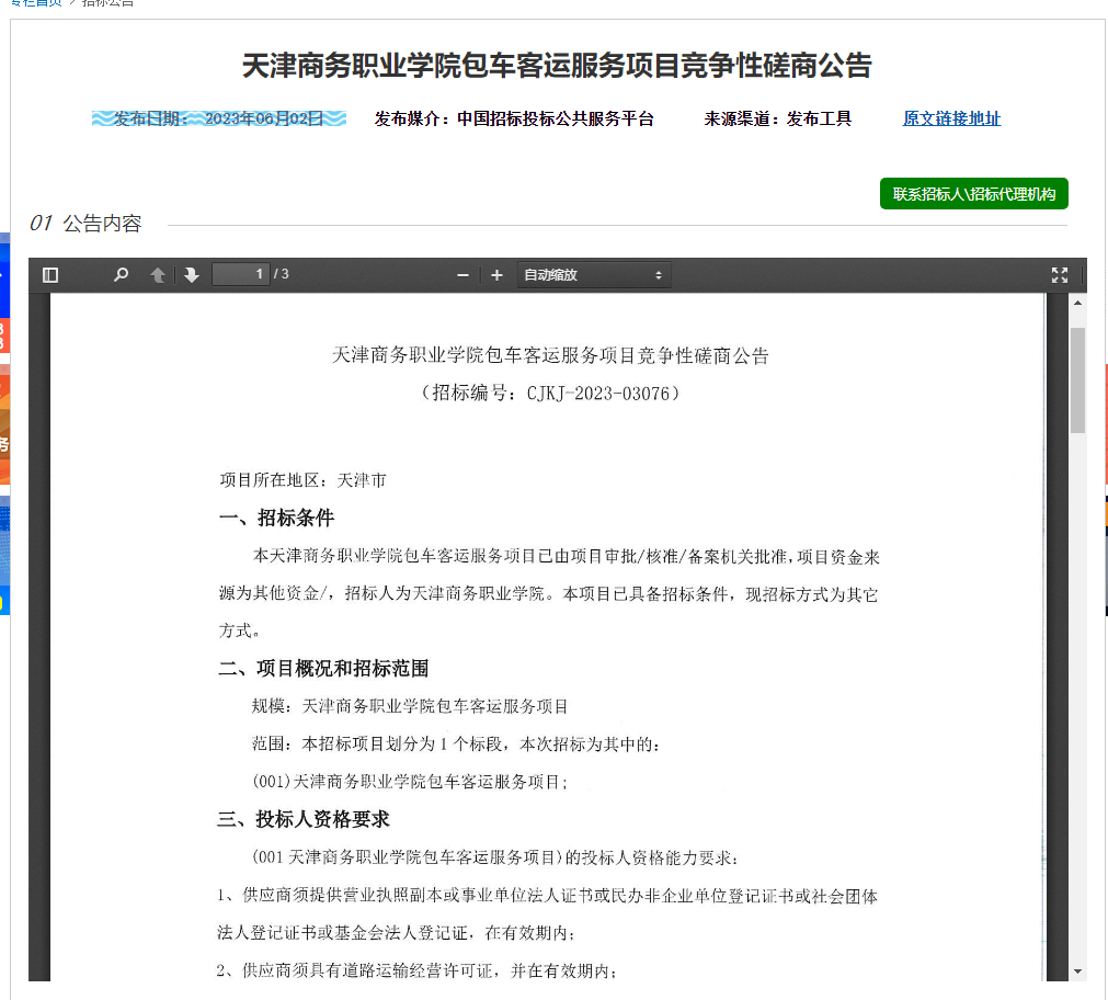 天津商務職業學院包車客運服務項目競爭性磋商公告