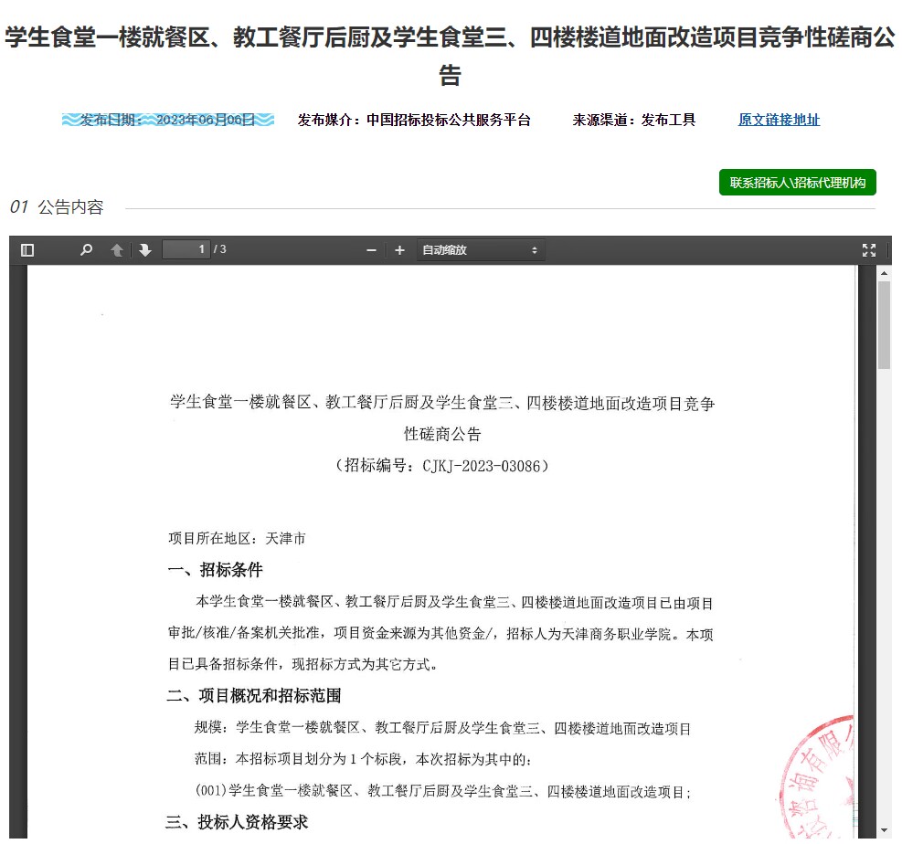 學生食堂一樓就餐區、教工餐廳后廚及學生食堂三、四樓樓道地面改造項目競爭性磋商公告