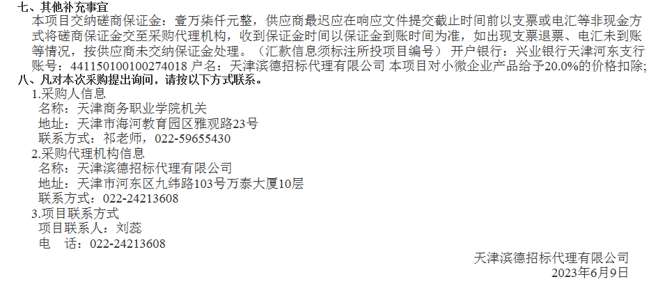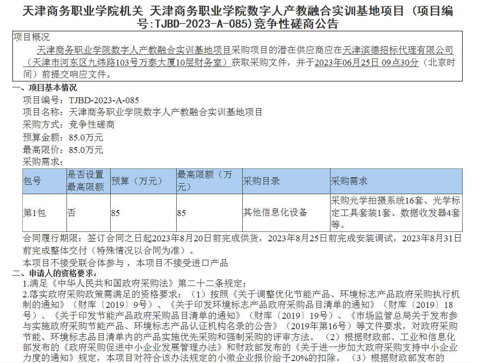天津商務職業學院數字人產教融合實訓基地項目 (項目編號TJBD-2023-A-085)競爭性磋商公告