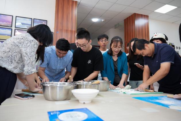 活動(dòng)現(xiàn)場(chǎng)氣氛熱烈,笑語(yǔ)連連,暖意濃濃。輔導(dǎo)員老師們與中外學(xué)生一起動(dòng)手搟面皮、包餃子,整個(gè)制作過(guò)程,師生間互幫互助、相互協(xié)作,傳遞了濃濃的節(jié)日氛圍與深深的師生情誼,讓遠(yuǎn)離家鄉(xiāng)的2024級(jí)新生感受到了家一般的溫暖與節(jié)日歡樂(lè)。