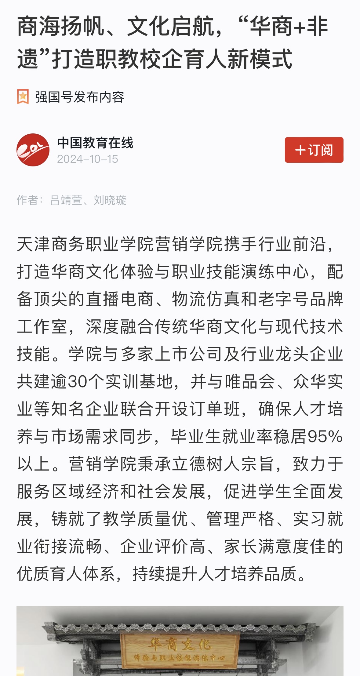 媒體關注 | 【學習強國】商海揚帆、文化啟航,“華商+非遺”打造職教校企育人新模式
