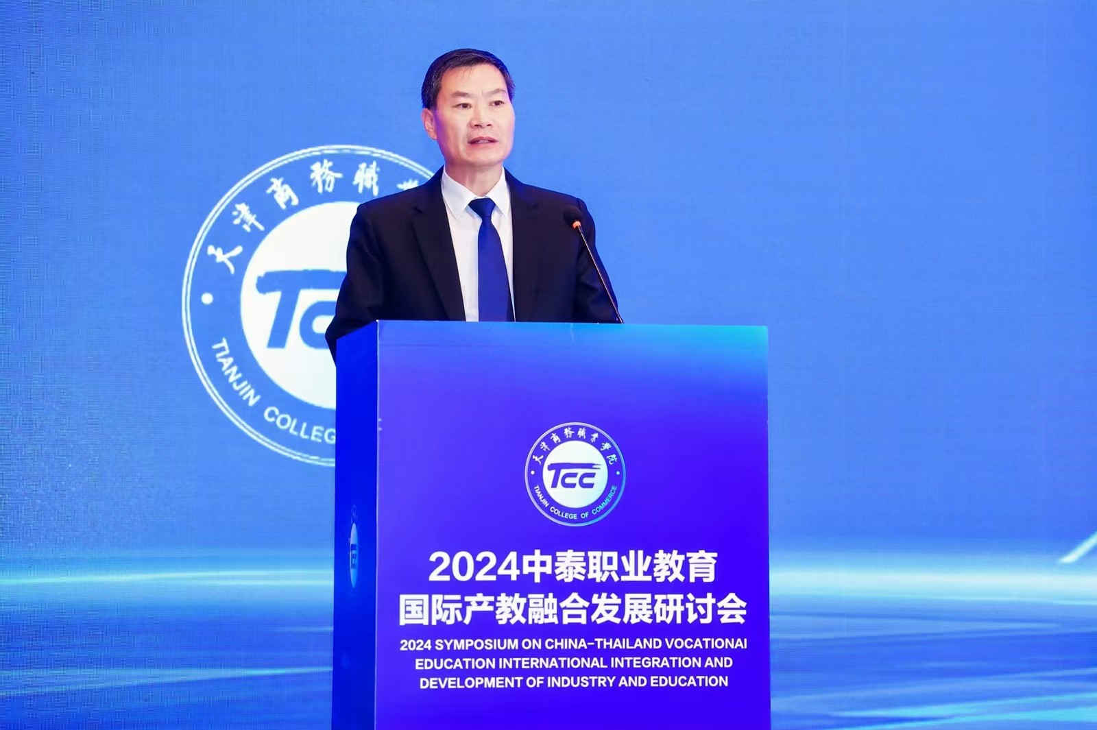 為深入學(xué)習(xí)貫徹黨的二十屆三中全會(huì)精神和習(xí)近平總書記關(guān)于對(duì)外開放工作的重要論述,全面貫徹落實(shí)全國(guó)教育大會(huì)精神,推動(dòng)“職教出海”,深化我校與泰國(guó)教育界的交流合作,推動(dòng)學(xué)校中外合作辦學(xué)持續(xù)向好發(fā)展,2024年10月31日至11月1日,由天津商務(wù)職業(yè)學(xué)院主辦,萬豪國(guó)際集團(tuán)、泰國(guó)博仁大學(xué)、帕瓦納·菩提坤職業(yè)學(xué)院支持的“中泰職業(yè)教育國(guó)際產(chǎn)教融合發(fā)展研討會(huì)暨萬豪產(chǎn)業(yè)學(xué)院泰國(guó)全境46家海外實(shí)習(xí)基地群合作協(xié)議簽約儀式”成功舉行。天津市商務(wù)局二級(jí)巡視員顧廷新,天津市津南區(qū)人民政府副區(qū)長(zhǎng)、海河教育園區(qū)管委會(huì)專職副書記、常務(wù)副主任薛彤到會(huì)祝賀。