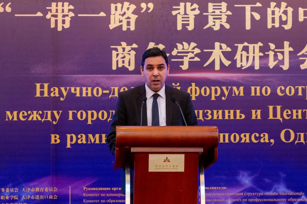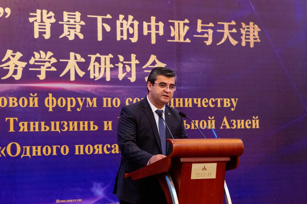 塔吉克斯坦駐華大使館參贊薩比爾佐達·舒赫拉特先生作主旨演講