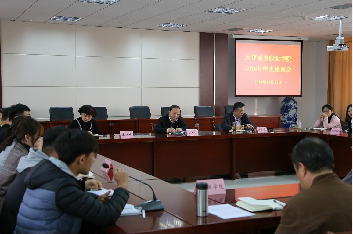 11月13日下午,學(xué)校召開學(xué)生座談會。校長宮寶利、副校長李富森出席會議,學(xué)生工作處、教務(wù)處、后勤管理處、保衛(wèi)處、圖文信息中心、實訓(xùn)部主要負(fù)責(zé)同志,各二級教學(xué)學(xué)院黨總支書記、學(xué)生工作專職副書記,全體輔導(dǎo)員及學(xué)生代表參加座談會。