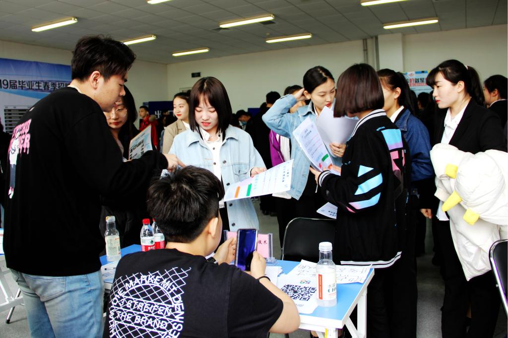 下午,2019屆畢業生春季招聘會在乒乓球室舉行。29家優質企業提供了與學校專業對口崗位760余個,共有千余名學生入場,現場氣氛熱烈。