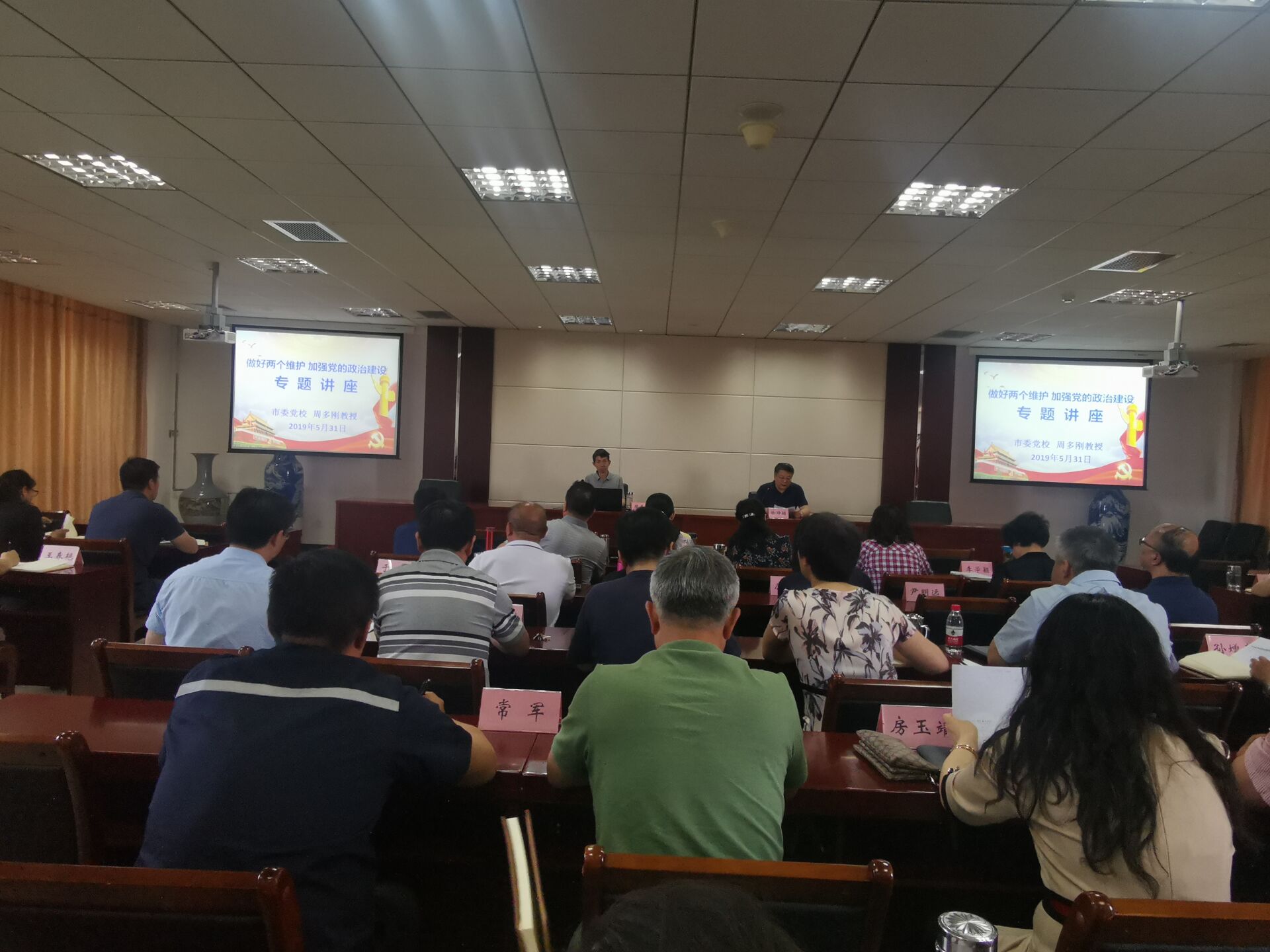 為深入學習貫徹習近平新時代中國特色社會主義思想,引導廣大領導干部自覺做到“兩個維護”,不斷增強“四個意識”,推動學校各項工作更好地開展,5月31日下午,我校特邀市委黨校黨建部教授周多剛博士為全體中層干部、年輕干部培訓班學員作專題講座,黨委副書記徐琤穎出席并講話。