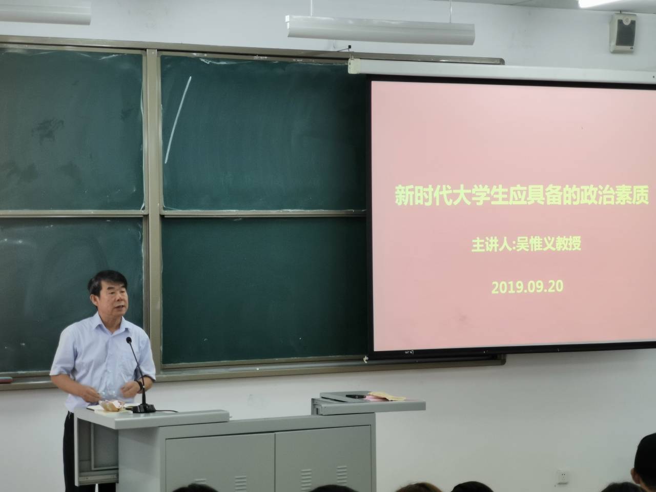 2019年9月20日下午,學校黨委書記吳惟義教授為以《新時代大學生應具備的政治素質》為題為我校2018級近300名學生作了一場精彩的形勢與政策報告。