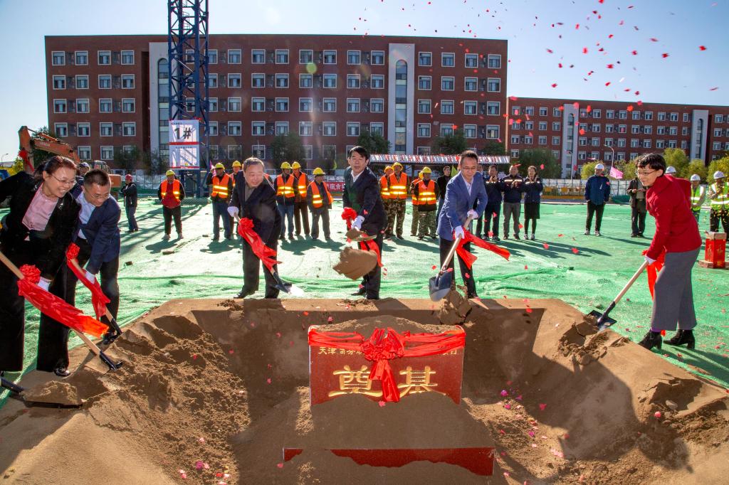 10月25日,我校隆重舉行新建宿舍樓項(xiàng)目工程奠基儀式。學(xué)校黨委書記吳惟義、校長宮寶利,天津市建工工程總承包有限公司董事長高志偉、副經(jīng)理軒欲曉,天津市眾洋建筑工程有限公司經(jīng)理王凱出席奠基儀式。奠基儀式由副校長尹秀琴主持。