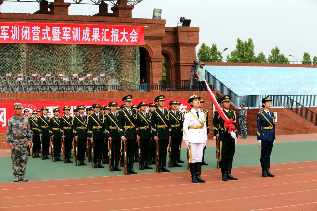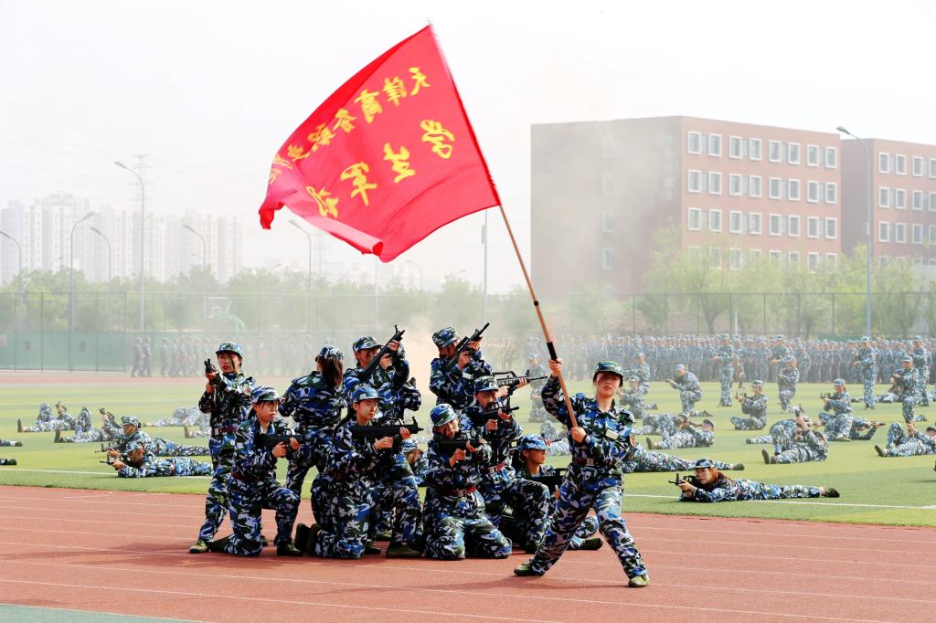 大會(huì)以莊嚴(yán)肅穆的升旗儀式開(kāi)始,閱兵式由學(xué)校黨委書(shū)記宮寶利檢閱學(xué)生軍訓(xùn)方隊(duì),分列式上各軍訓(xùn)營(yíng)方隊(duì)步伐整齊、口號(hào)嘹亮、軍姿嚴(yán)整,展示出積極進(jìn)取、昂揚(yáng)向上的精神風(fēng)貌。軍訓(xùn)成果匯報(bào)先后展示了坦克體操、匕首操、擒敵拳、三聲三相、分隊(duì)?wèi)?zhàn)術(shù)訓(xùn)練等科目,充分展示軍訓(xùn)技能訓(xùn)練成果。