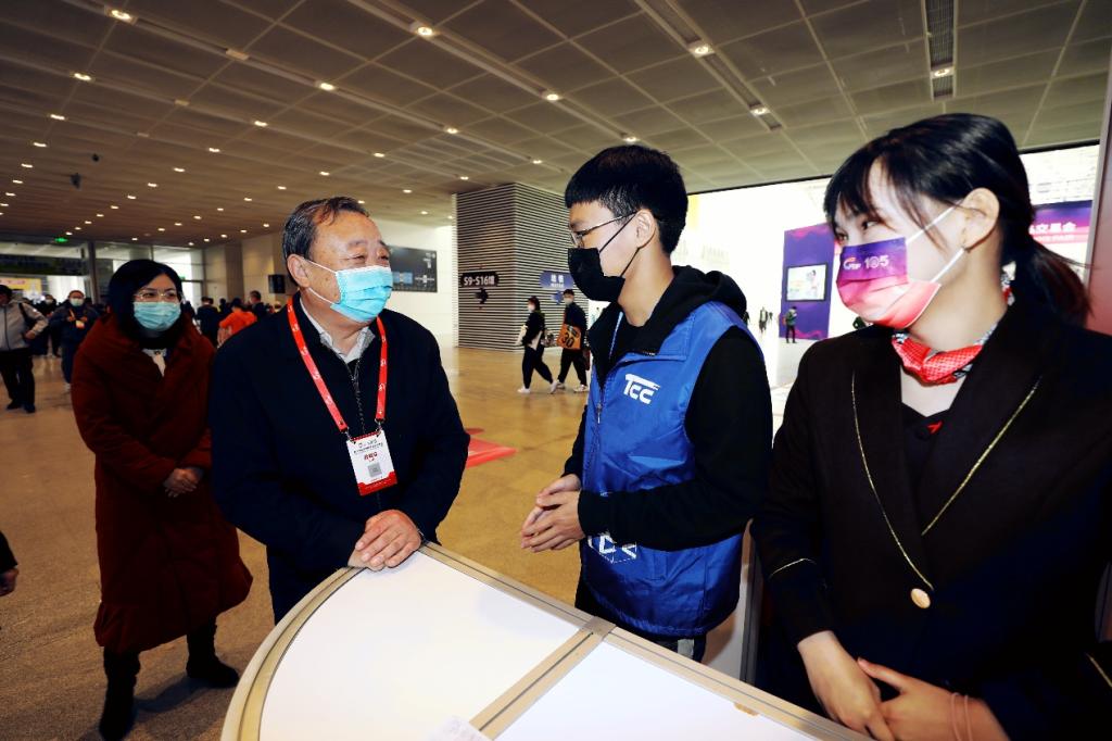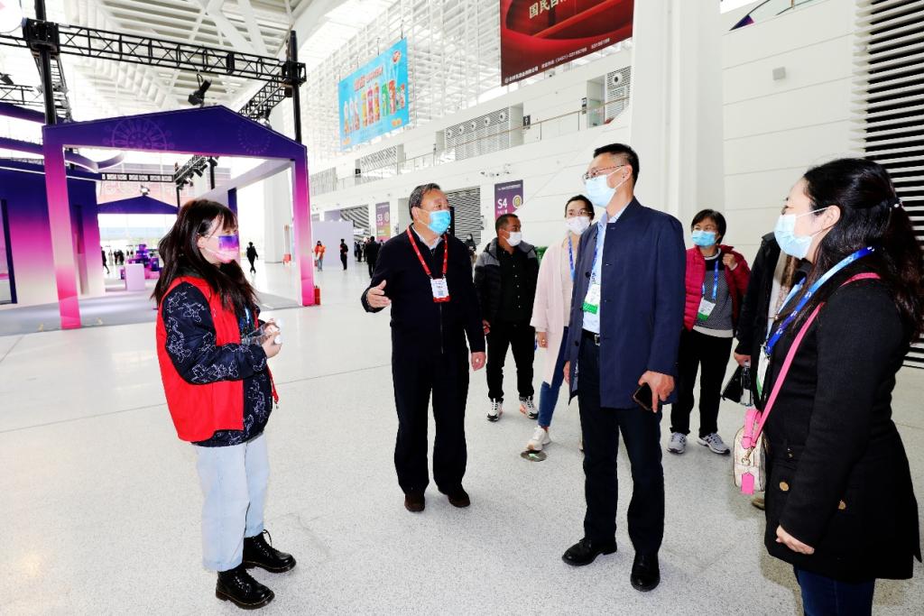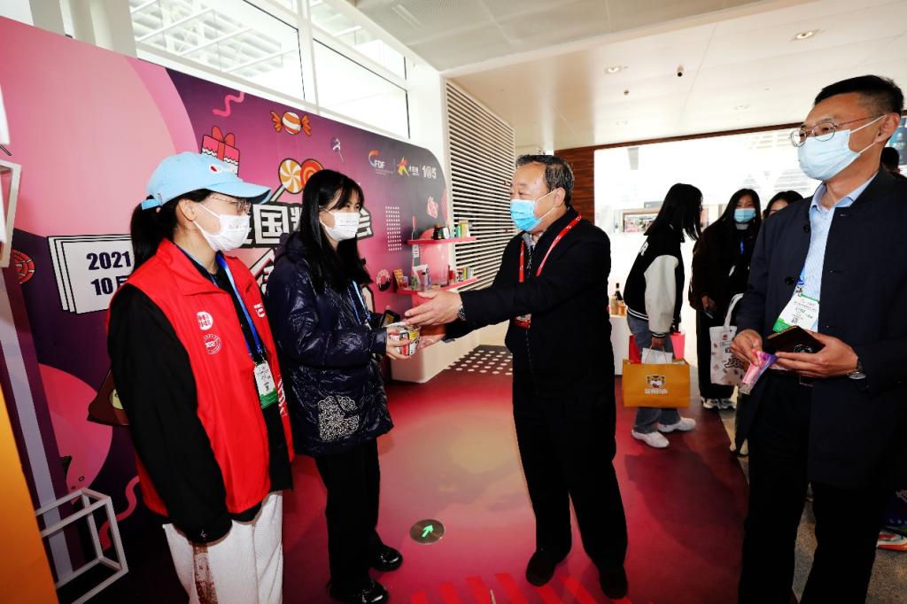 宮書記與志愿者們親切交流,并送上學校的慰問與祝福。他詳細了解了我校志愿者的崗位分工,關切詢問同學們在參加志愿服務期間的學習和生活情況,傾聽了大家對學校組織保障工作的建議。宮書記對志愿者參與到展會服務保障工作并高水準完成各項任務予以高度肯定,勉勵學生一定充分把握好服務秋糖會等重要大型展會項目的機會,認真、踏實、勤懇工作,將課堂內所學的專業知識與展會籌備及現場各項工作實際相結合,真正做到“學做一體、知行合一”,以提升職場競爭力和可持續發展能力。宮書記希望志愿者們兼顧好日常學習和志愿服務,努力把秋糖會匠心堅守的精神和務實高效的作風融入校園學習生活,讓這次志愿服務經歷成為珍貴的回憶。