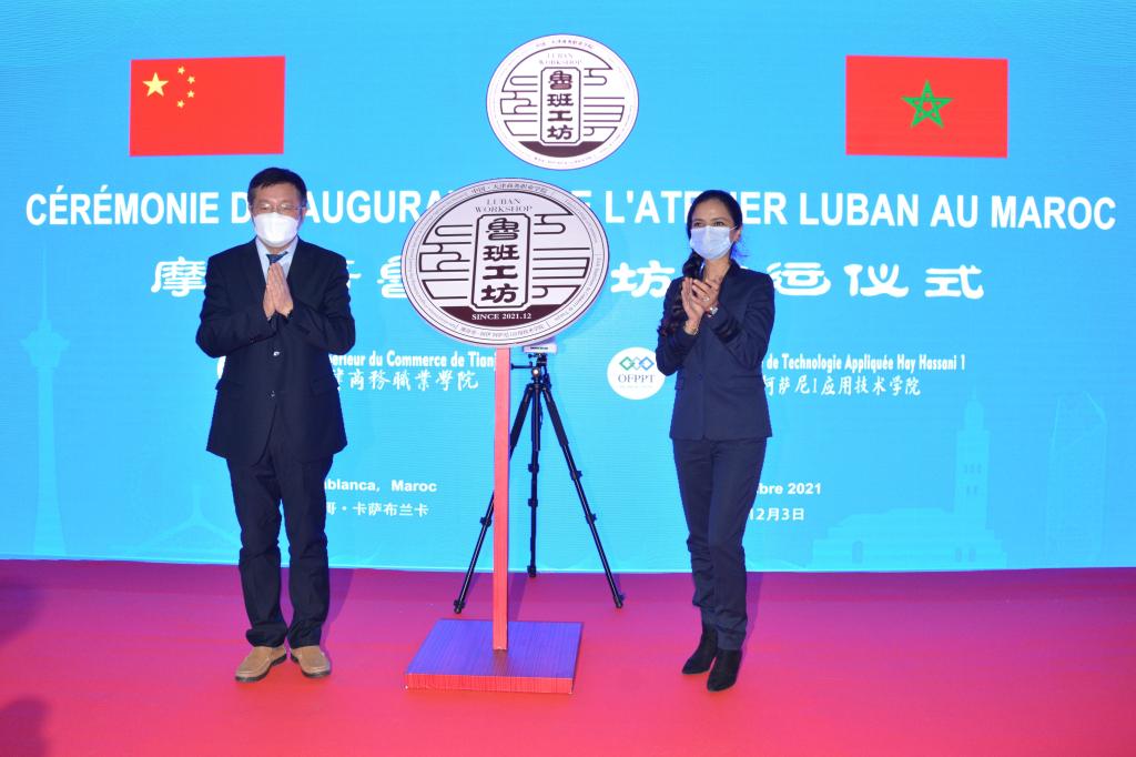 李昌林先生和盧波娜泰沙女士共同為摩洛哥魯班工坊揭牌