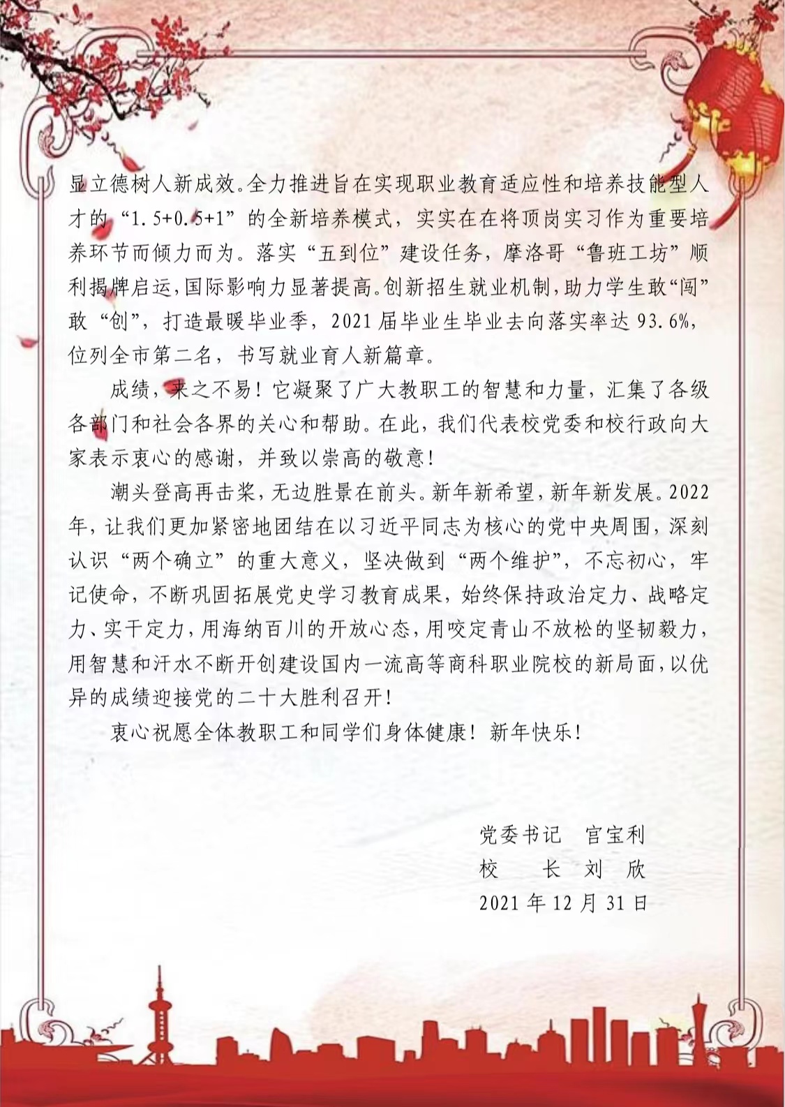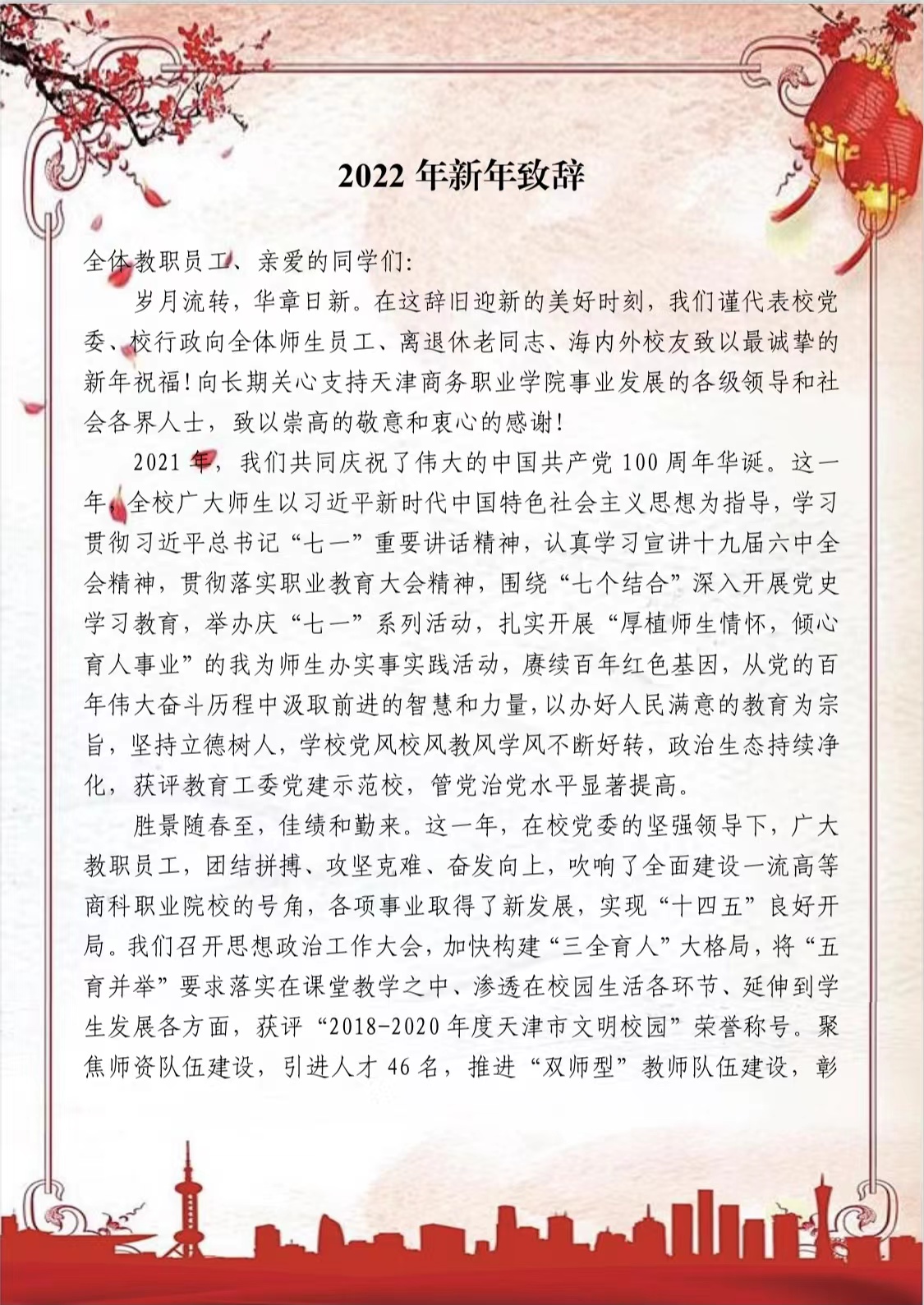 天津商務職業學院2022年新年致辭