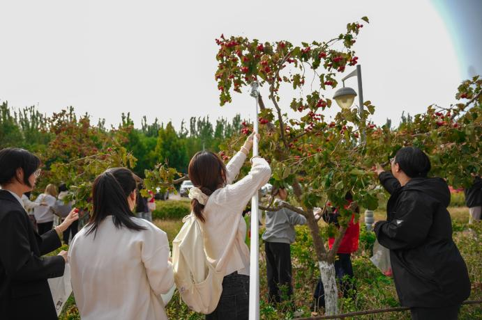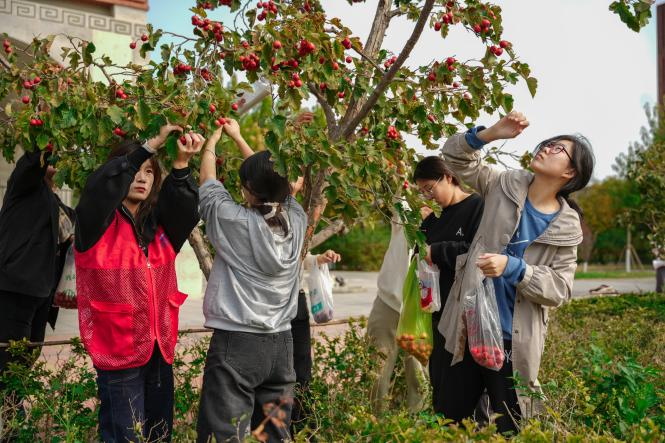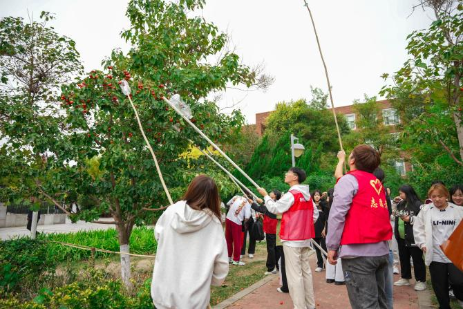 金秋寒露時節,美麗的商職校園里紅紅的山楂綴滿枝頭,甚是喜人。我國農諺有云:“寒露收山楂,霜降刨地瓜”。為豐富學校勞動教育課程實踐育人活動,讓同學們在體驗二十四節氣不同農事勞作過程中體會和傳承勞動精神,金融學院在黨委學生工作部、后勤管理處的指導下開展“商務四季 五育融合 金秋寒露 山楂采摘”勞動教育實踐活動,組織來自金融學院、會計學院的同學們集中對學校圖書館樓兩側30株山楂樹進行采摘。