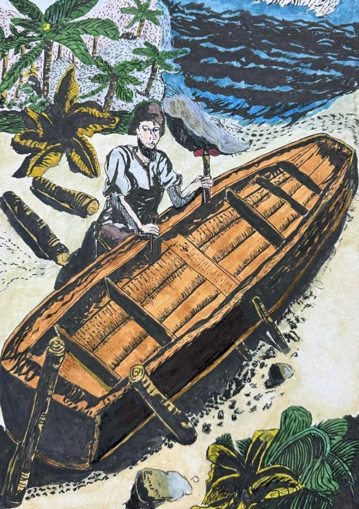 (《成長悅讀 魯濱遜漂流記》插畫 金融學院駱思彤作品)