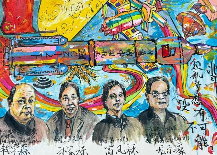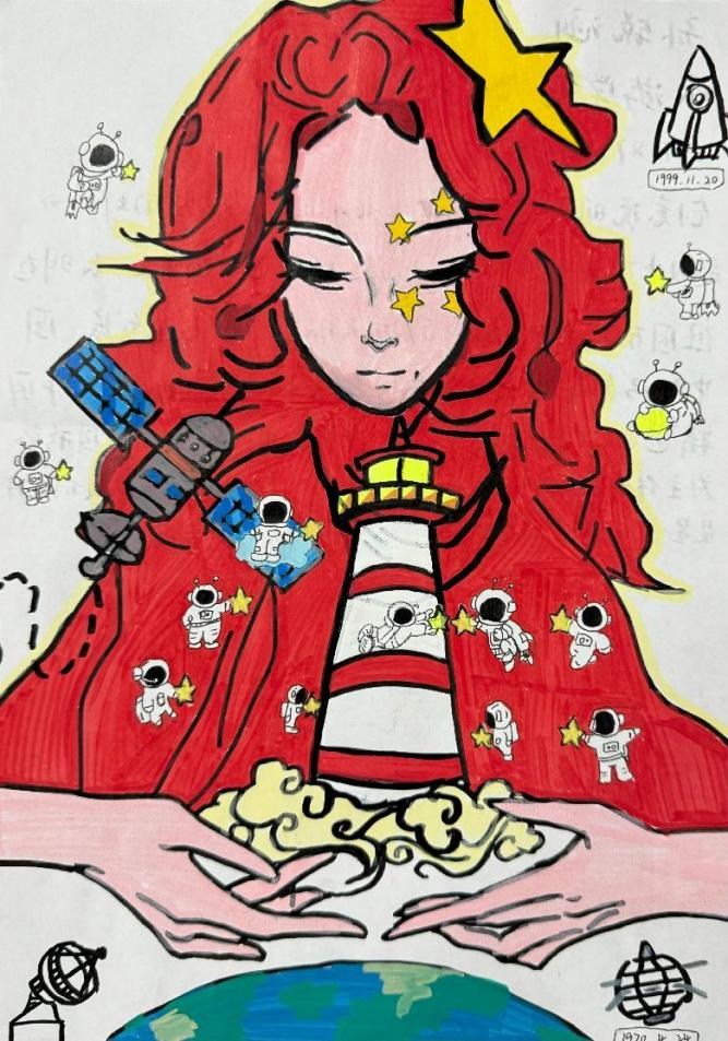 (《北斗團隊 點亮太空的燈塔》插畫 旅游學院孫銳涵作品)