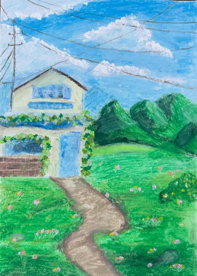 (《回家鄉建一座圖書館》插畫 應用外語學院郝文婷作品)