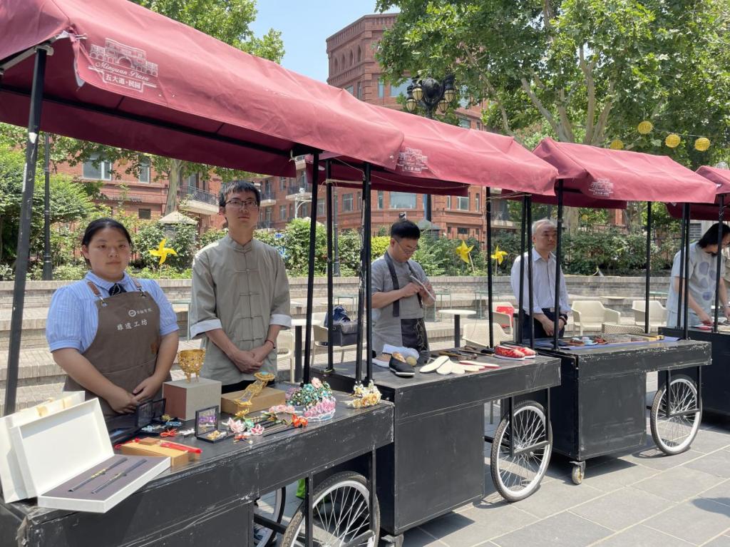 文化和自然遺產日期間,學校非遺工坊與和平區(qū)、河東區(qū)、東麗區(qū)、津南區(qū)等區(qū)非遺保護單位聯(lián)動,選派多名學校非遺工坊“青春合伙人”參與多場非遺展示活動,聚焦青年傳承、非遺融合、科技賦能非遺保護等內容,充分展現(xiàn)非遺工坊推動青年傳承實踐的青春活力?。