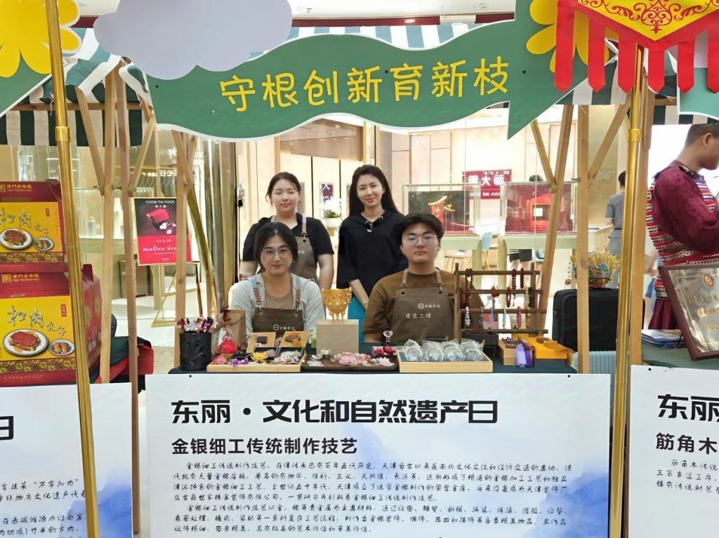 6月14日,非遺“潮”這看 遇見新東麗——東麗區(qū)2025年“文化和自然遺產日”非遺宣傳展示活動在東麗萬達廣場舉辦。學校非遺工坊最新引入的“金銀細工制作技藝”項目首次亮相非遺展,多項代表作品吸引市民駐足圍觀,近距離感受非遺魅力。