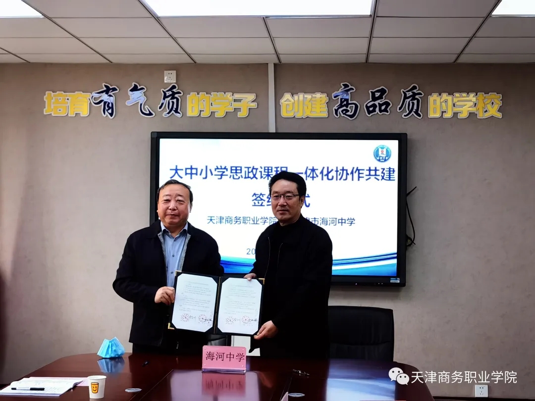 為全面貫徹黨的教育方針,落實立德樹人根本任務,堅持以合作促共贏、以交流促提升的發展思路,在市教育兩委關于推進大中小思政一體化建設、完善中小學與高校協同共建長效機制的背景下,11月4日,我校黨委書記宮寶利同志帶隊一行11人到天津市海河中學,簽訂“推進大中小學思政課一體化協作共建協議”。