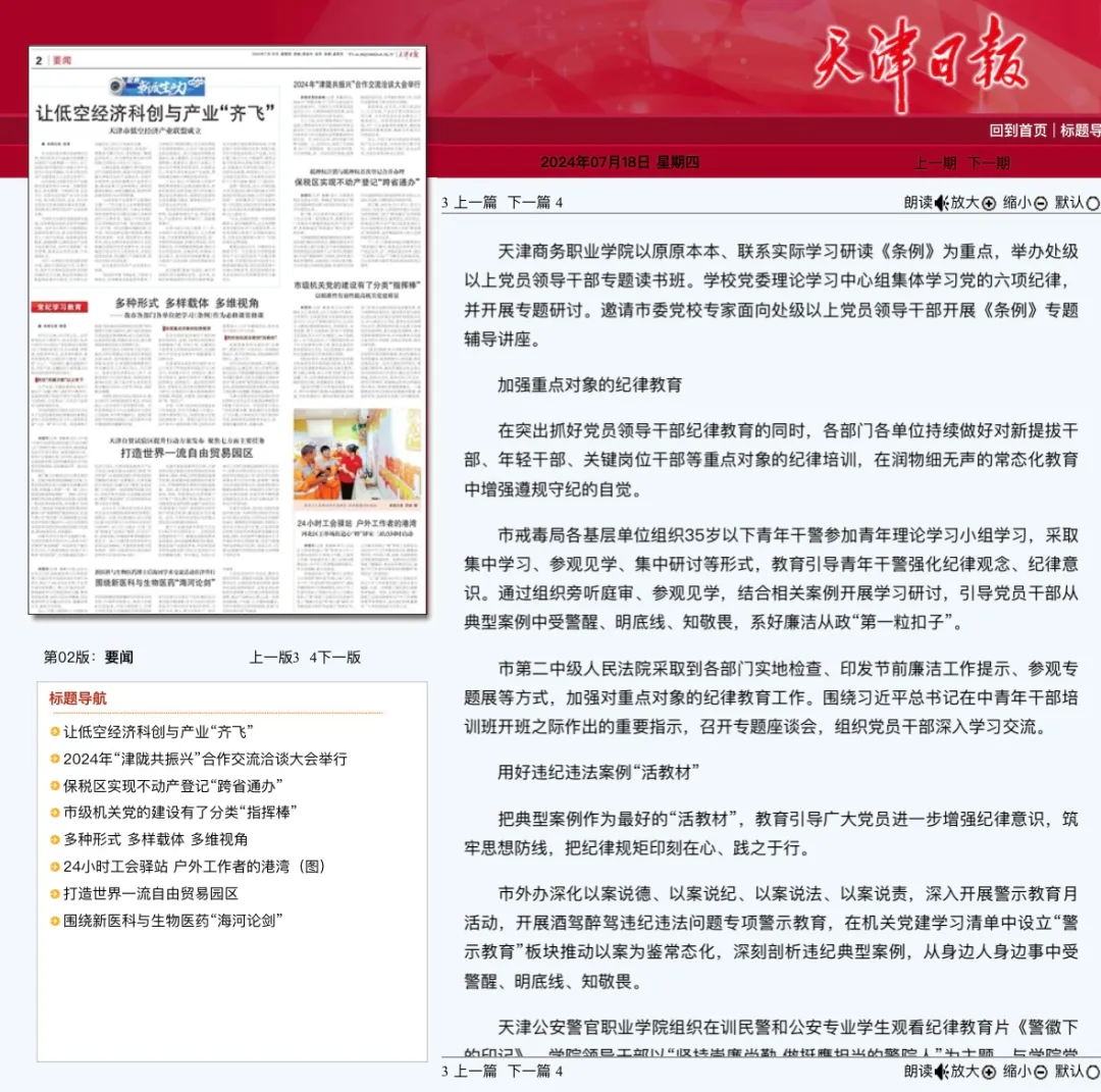 媒體關注 | 【天津日報】?黨紀學習教育 多種形式 多樣載體 多維視角 ?——我市各部門各單位把學習《條例》作為必修課常修課