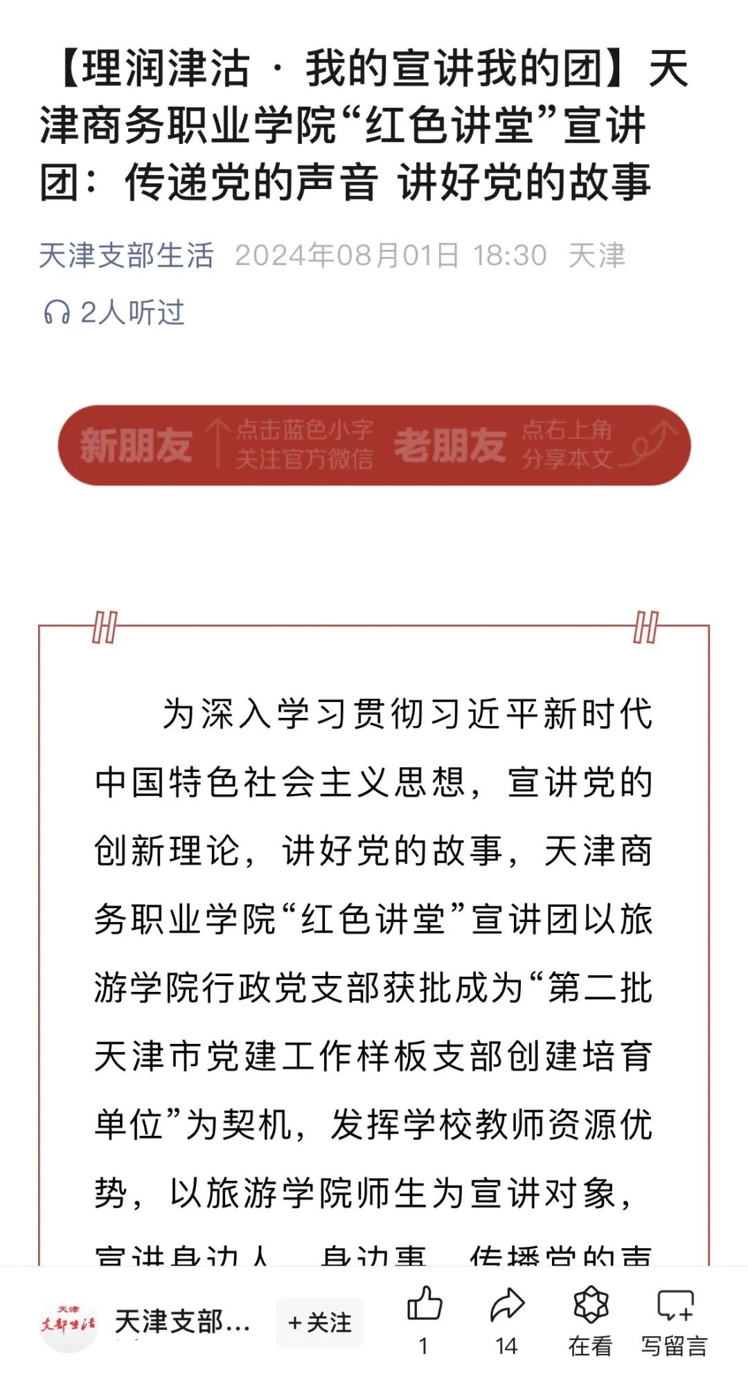 媒體關注 | 【天津支部生活】【理潤津沽 · 我的宣講我的團】天津商務職業學院“紅色講堂”宣講團:傳遞黨的聲音 講好黨的故事