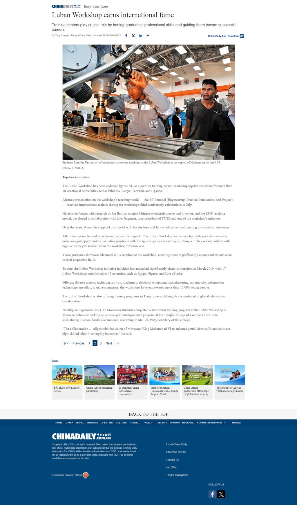 媒體關注 | 中國日報(國際版)重點宣介我校魯班工坊建設成果